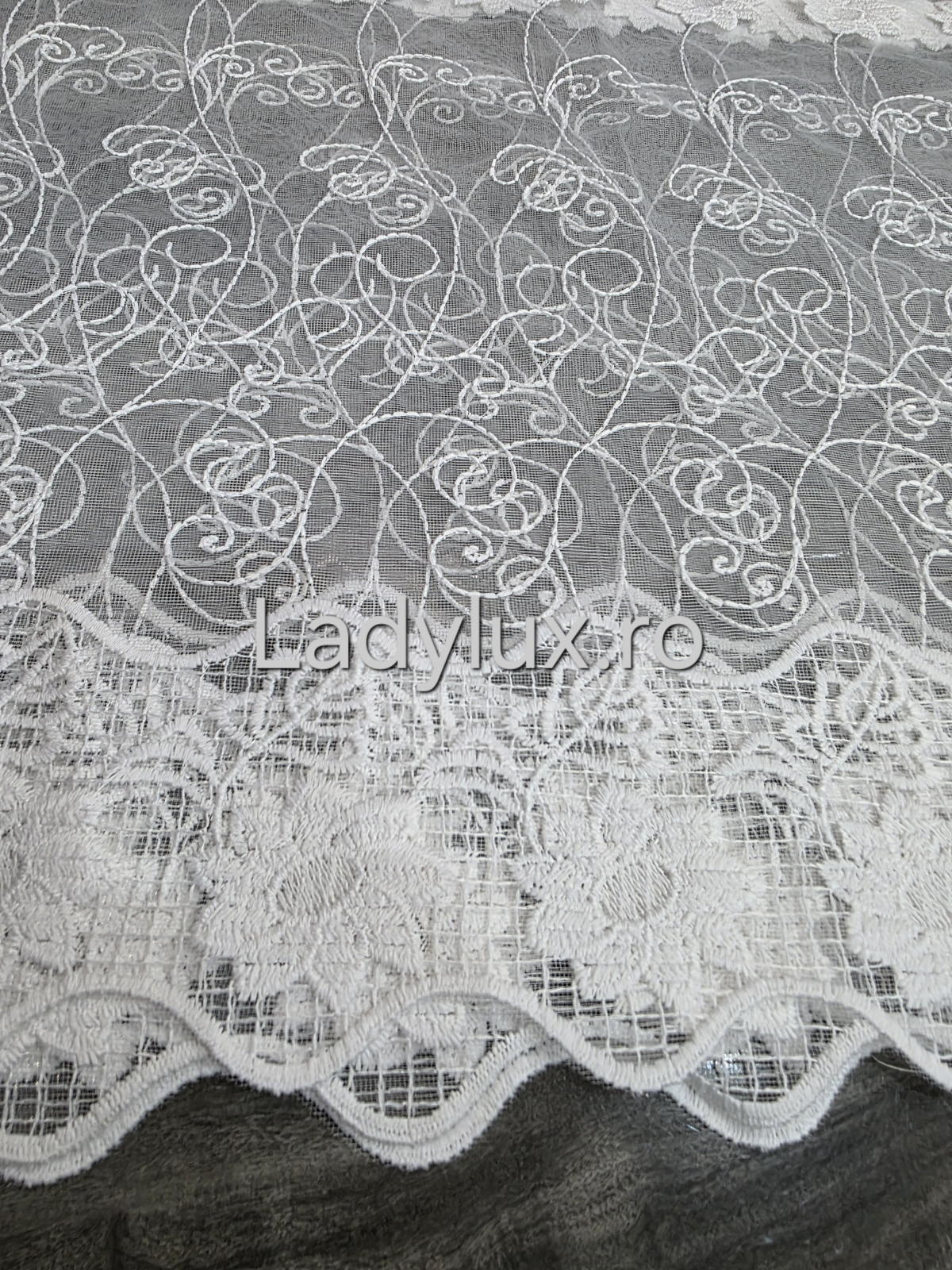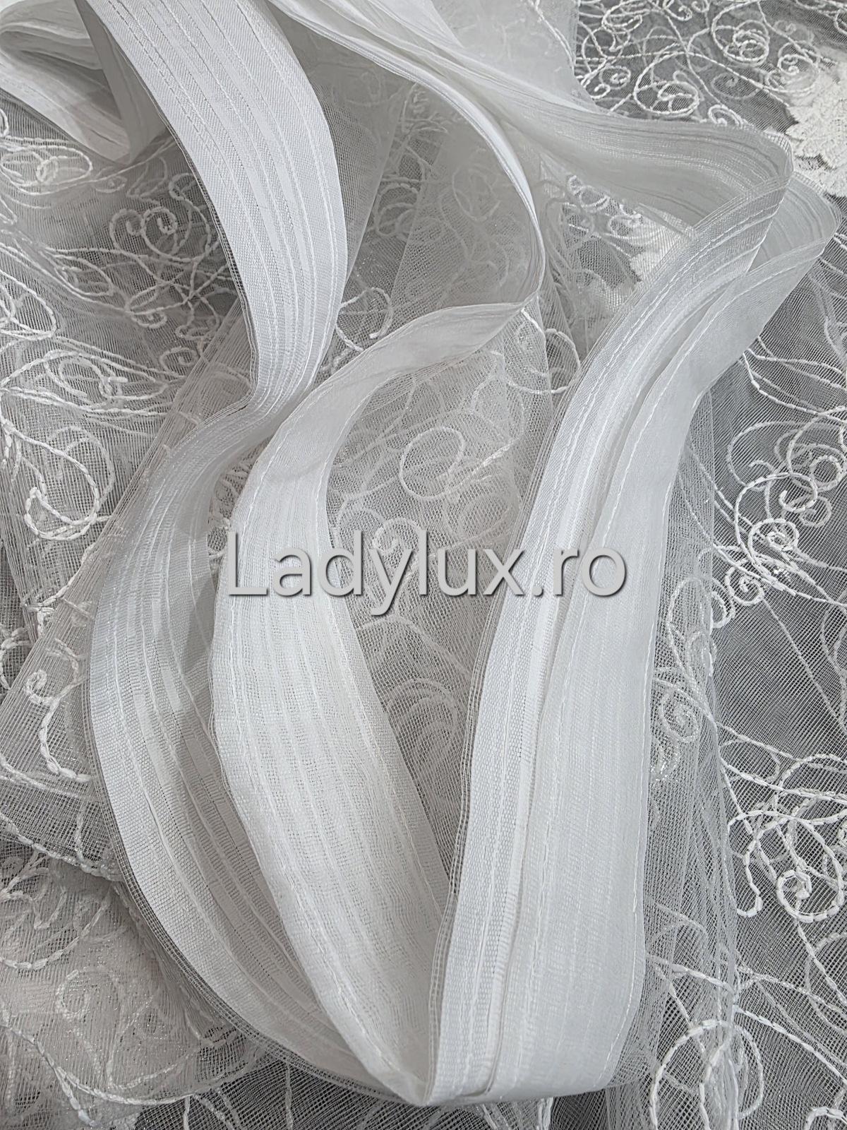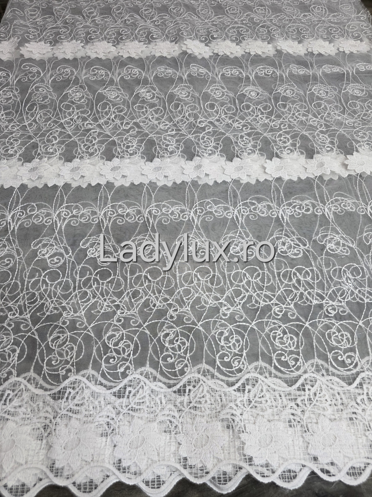 Perdea Bucătărie Brodată Alba Model Margareta – Gata Cusută cu Tiv și Rejanșă