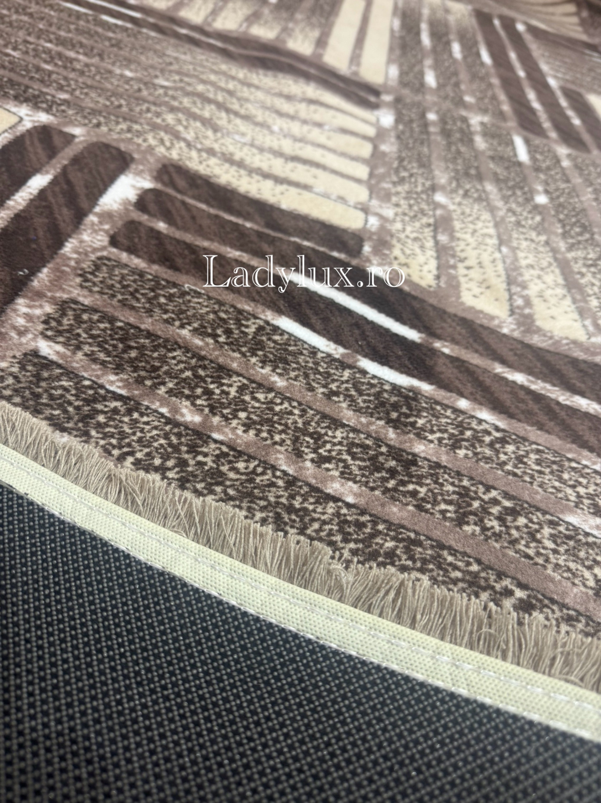 🤎 Covor 150x230 cm lucrat pe antiderapant cauciucat – căldură, siguranță și eleganță în nuanțe de maro