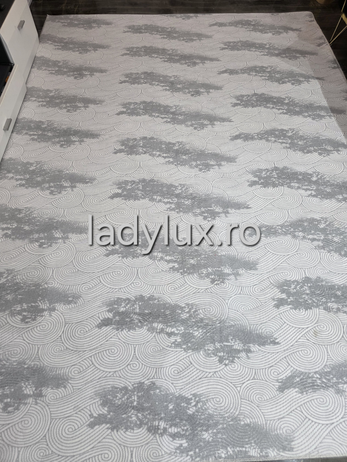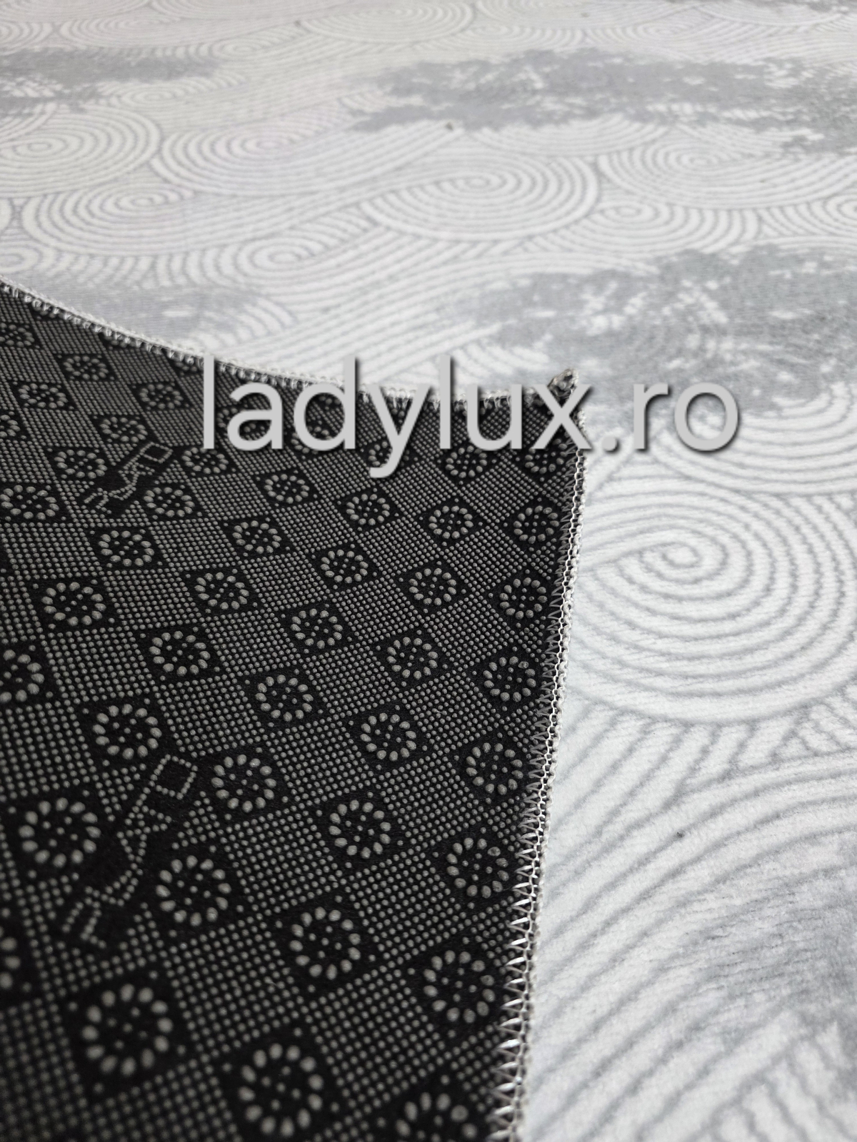 Covor 2x2.80 m pe suport antiderapant cauciucat, în nuanțe de gri. Căldură, siguranță și eleganță pentru casa ta. Calitate premium LadyLux Home & Deco.