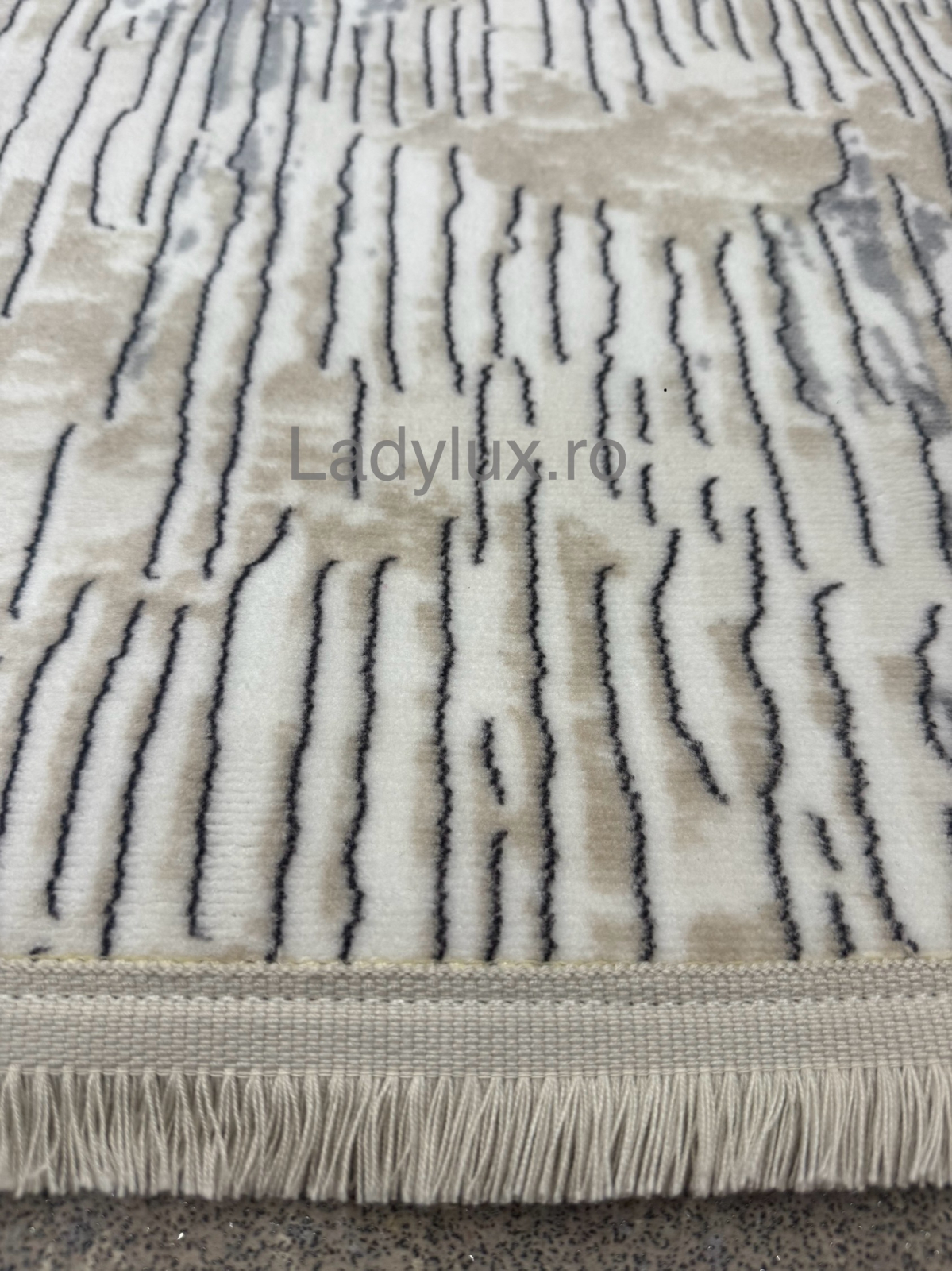 Acest covor modern combină stilul minimalist cu funcționalitatea, fiind alegerea ideală pentru cei care apreciază eleganța discretă și confortul de zi cu zi. Perfect pentru a completa un interior contemporan, oferă un aspect ordonat și sofisticat oricărui spațiu.