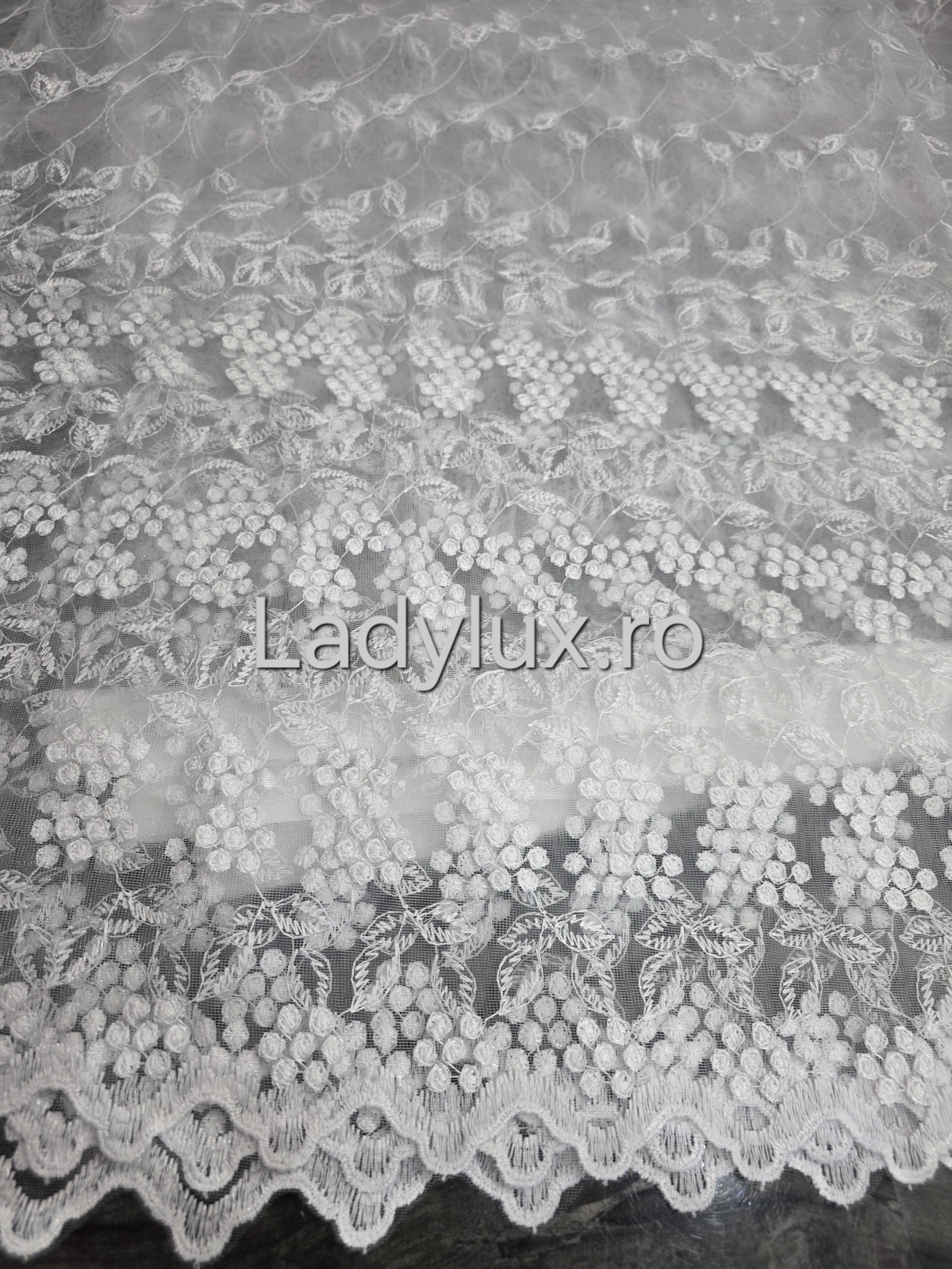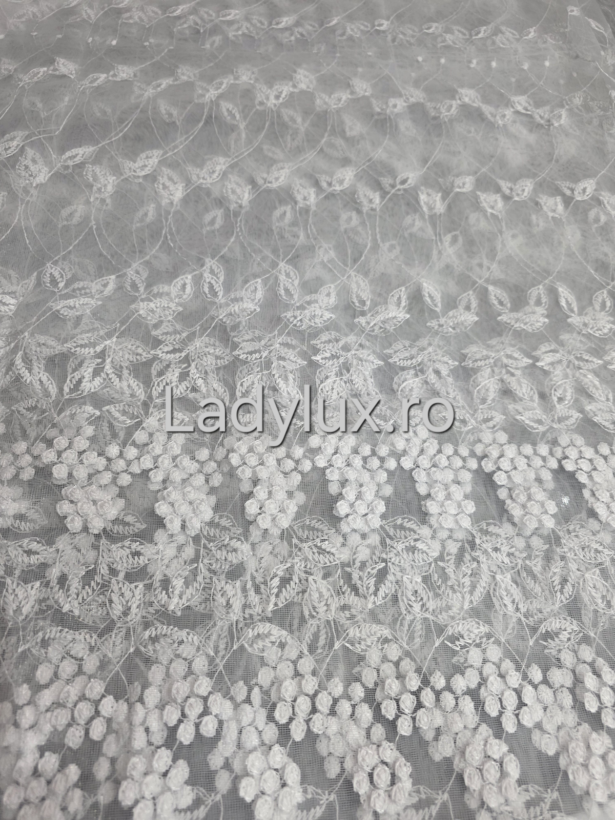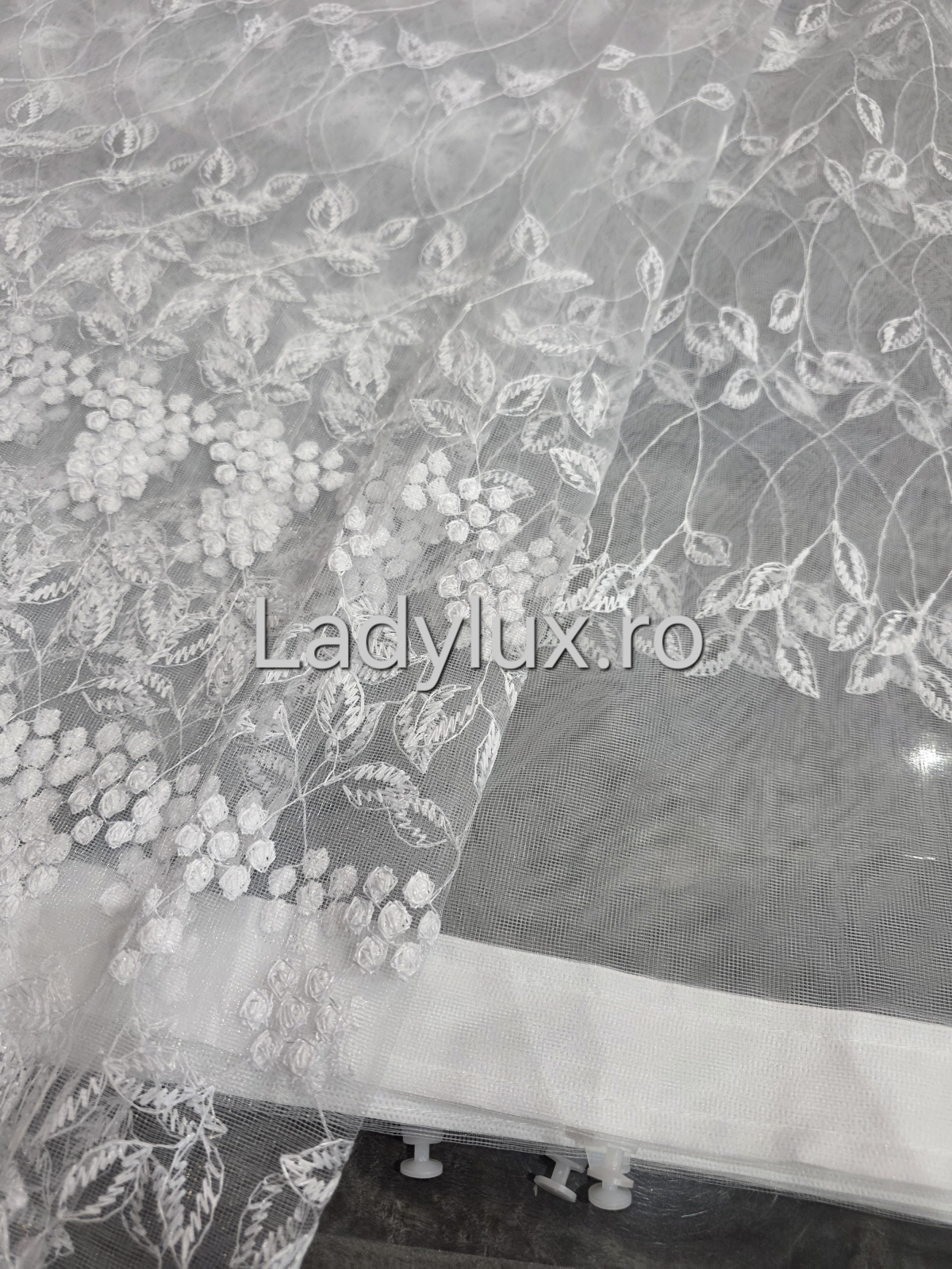 Perdea Alba cu Broderie Alba Model Ciorchine– rafinament și strălucire discretă C1751