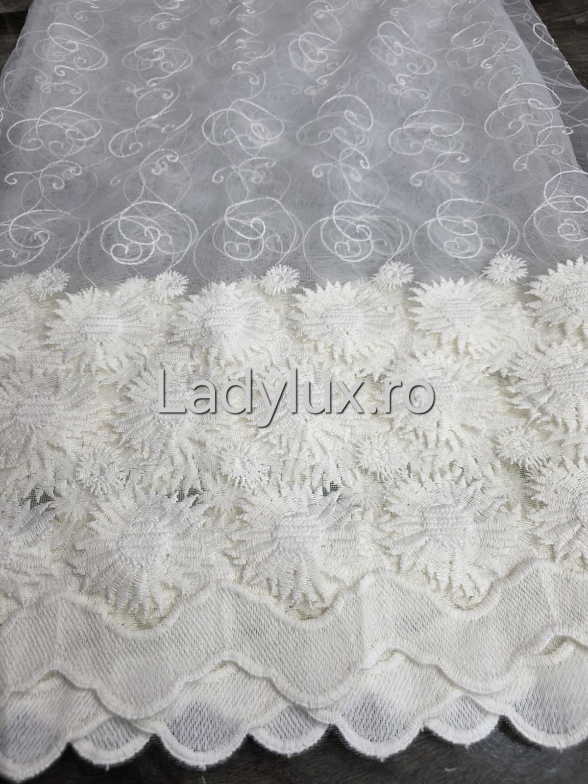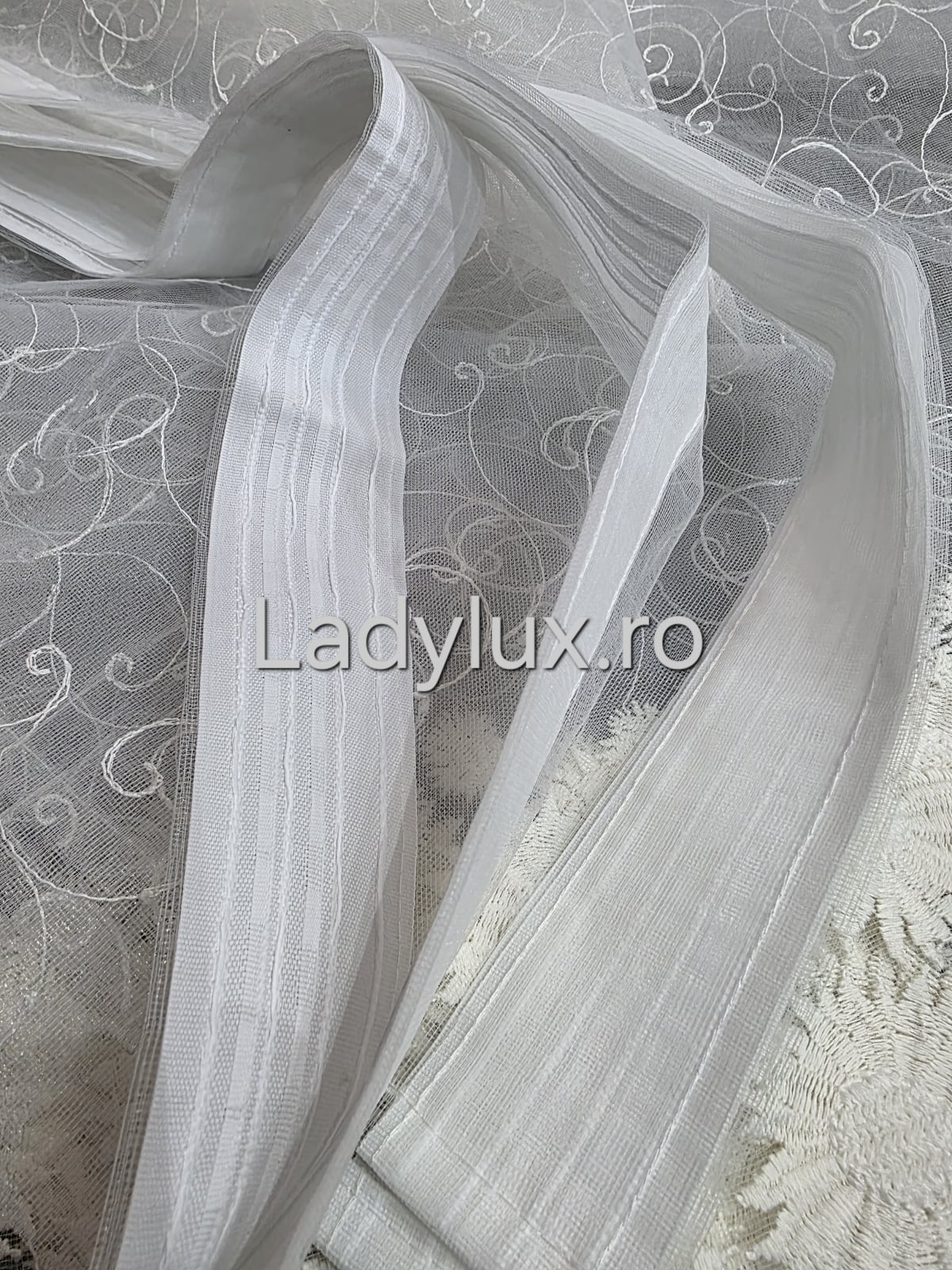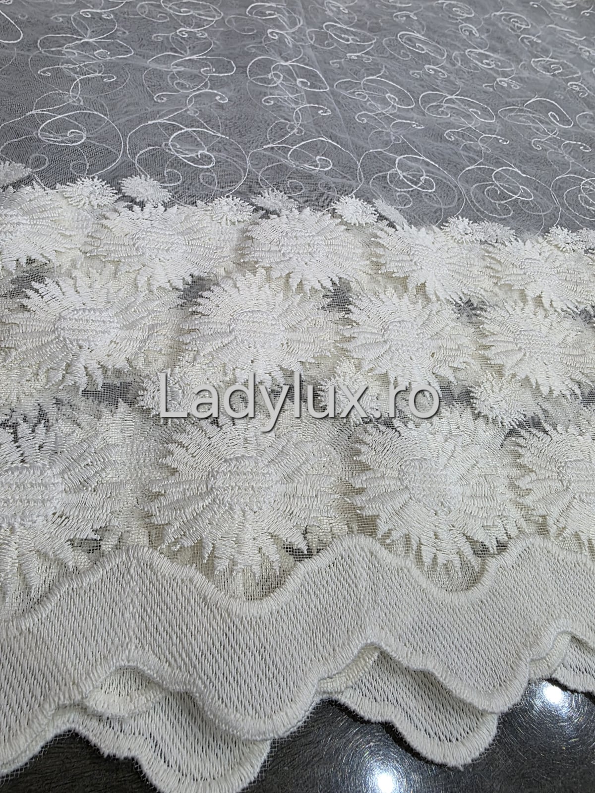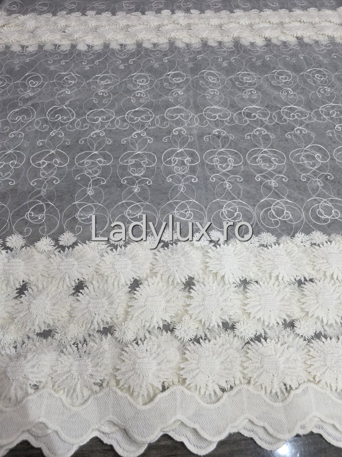 Perdea Bucătărie Brodată Model Margarete Ivoar – Gata Cusută cu Tiv și Rejanșă