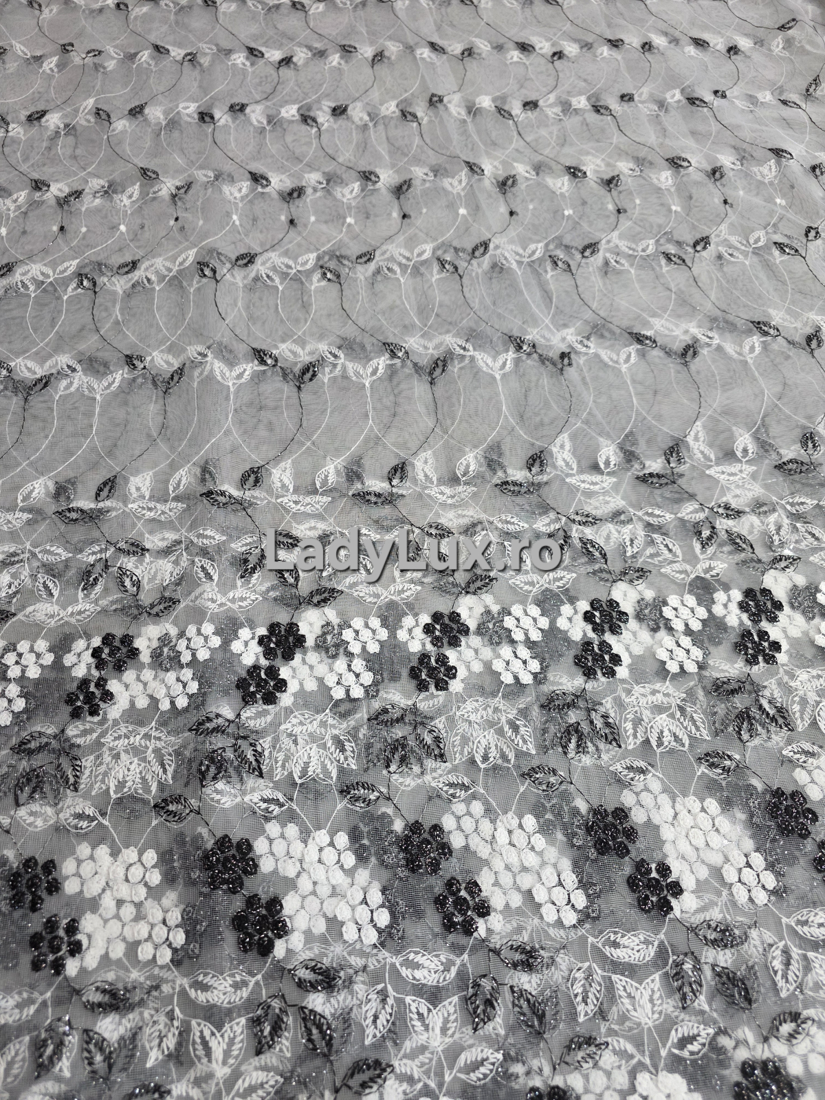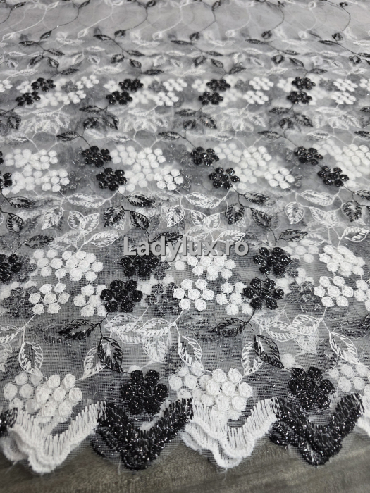 Perdea din tulle cu broderie Negru+alb , Model Ciorchine 4M x 2.8h