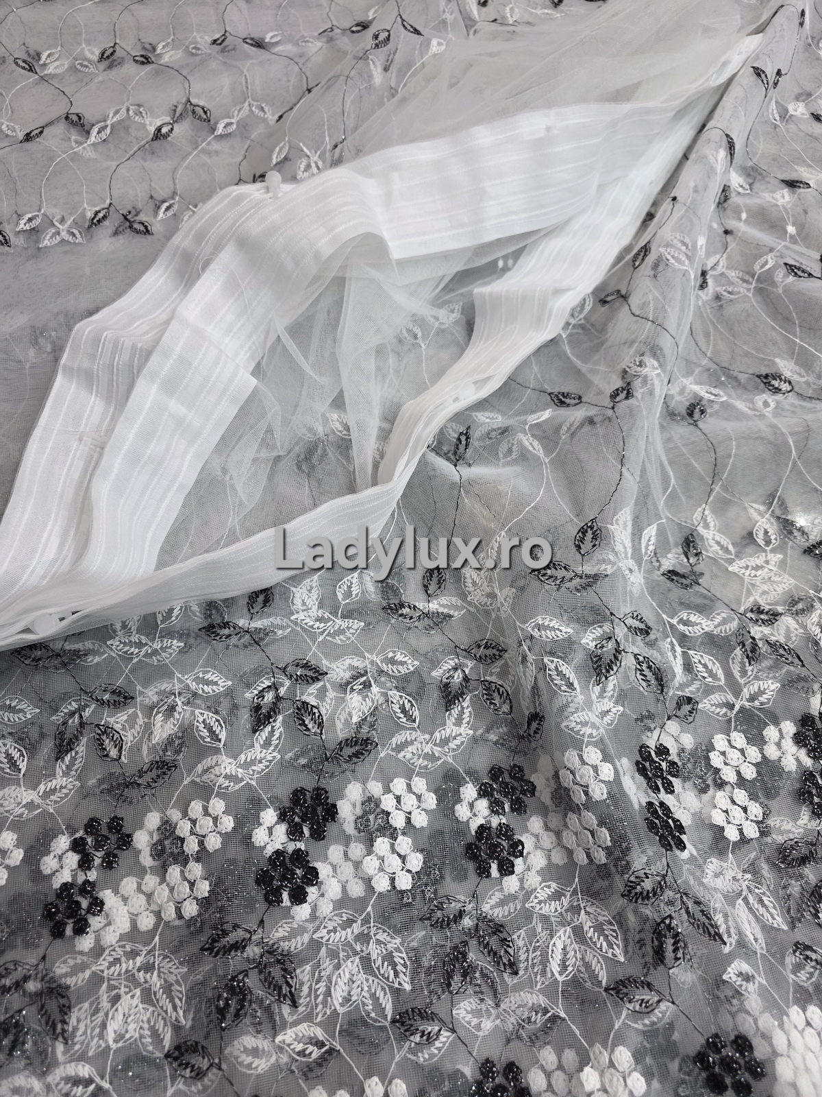 Perdea albă cu broderie Negru+alb – rafinament și strălucire discretă