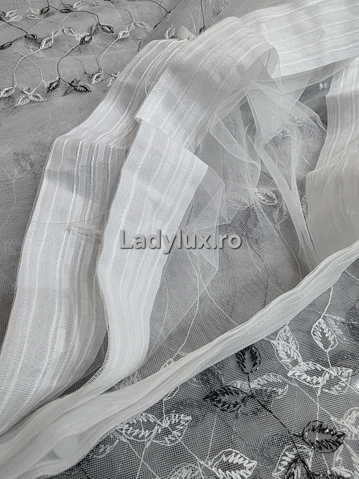 Perdea albă cu broderie  – eleganță și rafinament pentru orice cameră. Material fin, luminozitate naturală și finisaje de calitate LadyLux.
