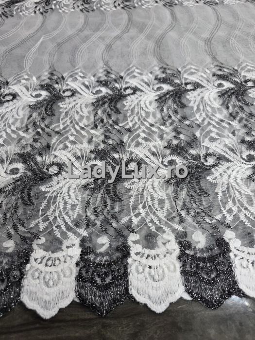 Perdea din tulle cu broderie Negru+alb , Model Crengute 4M x 2.8h