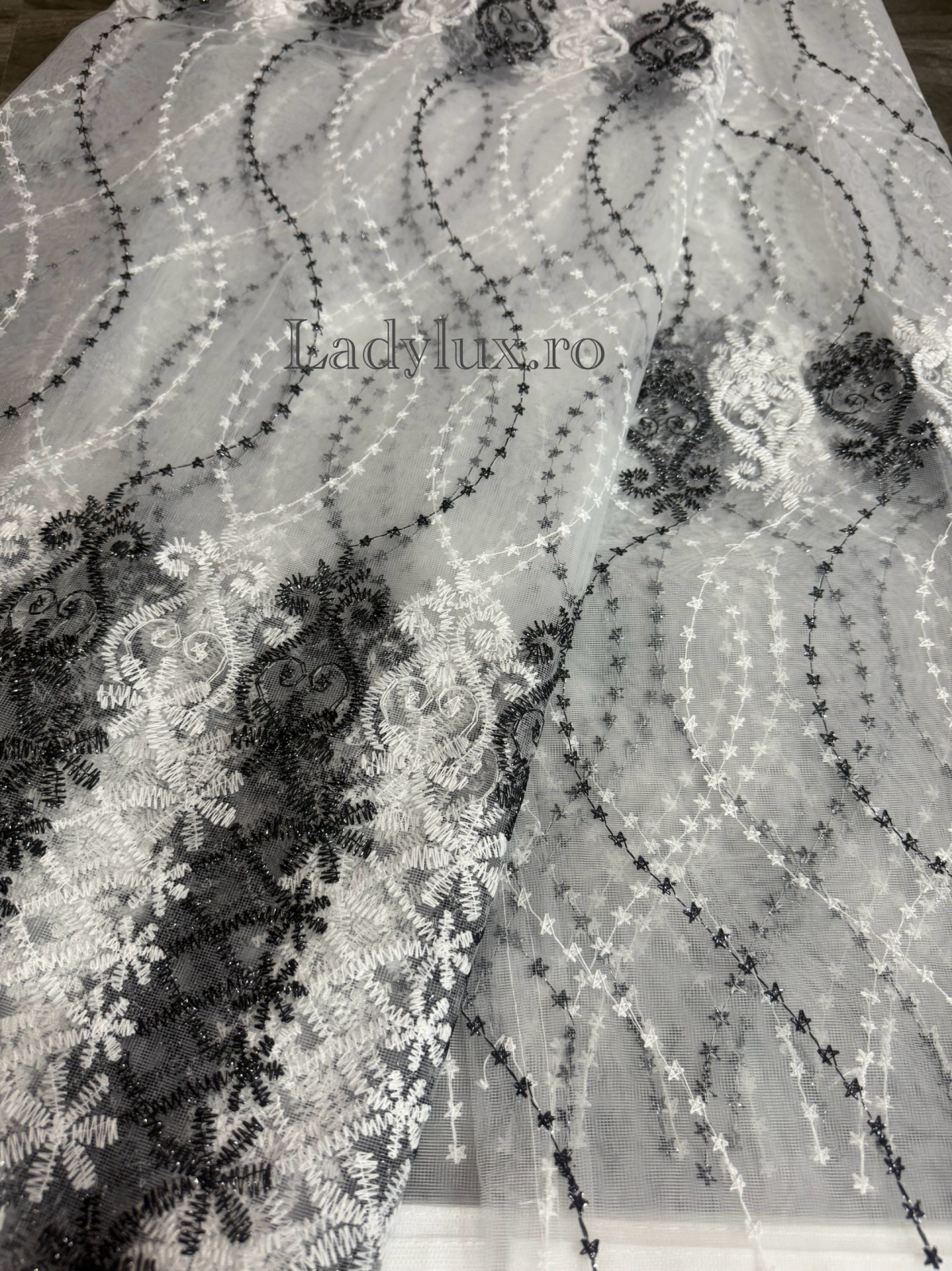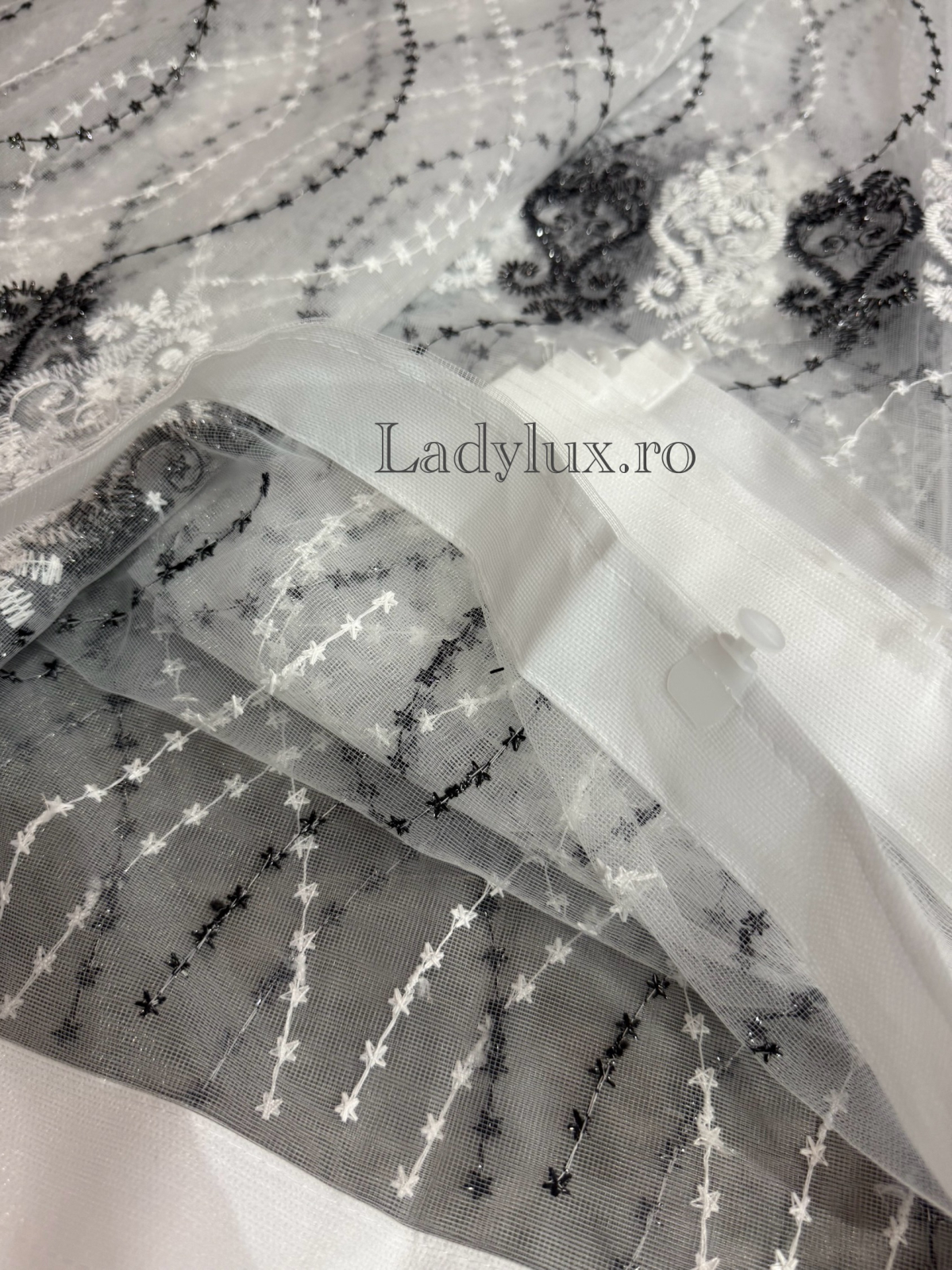 Perdea din tulle cu broderie Negru+alb , Model Fulgy 4M x 2.8h