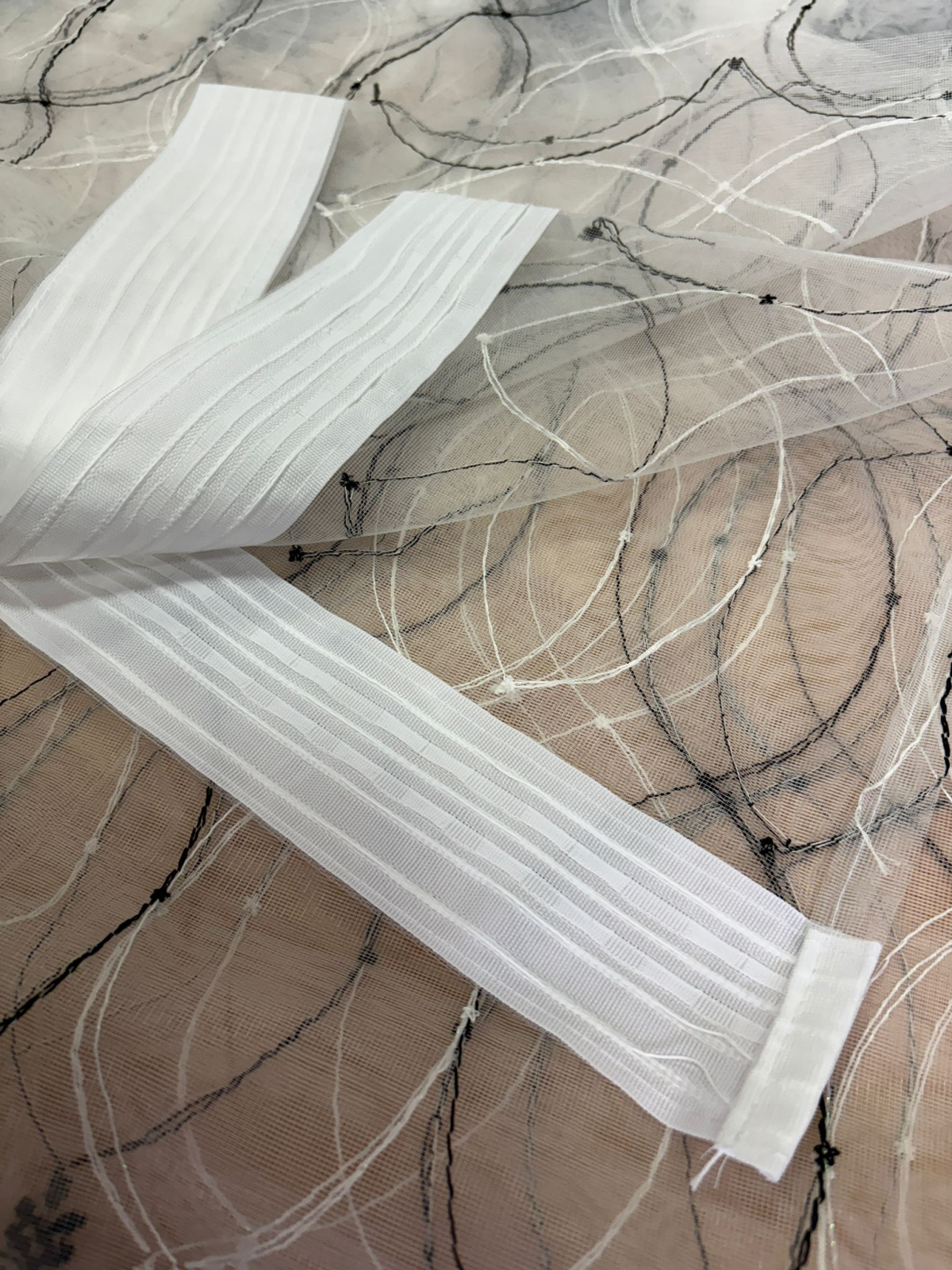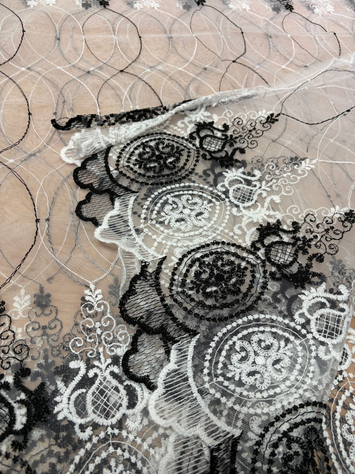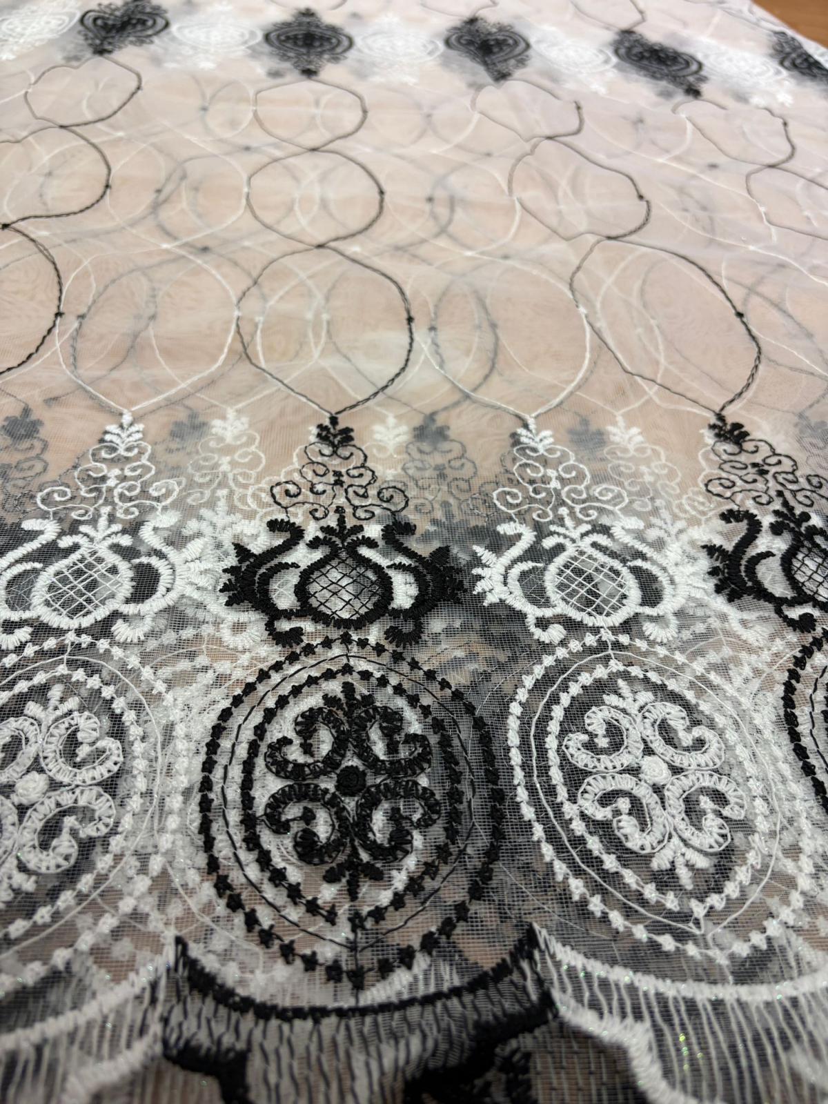 Perdea Tulle cu Broderie Alb+Negru, Model Baroc 4M x 2.5h Cu Tiv si Rejansa