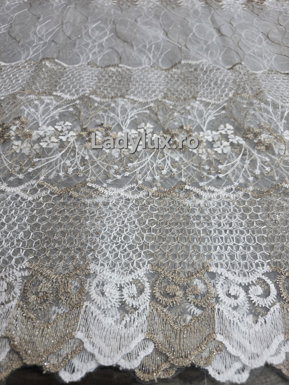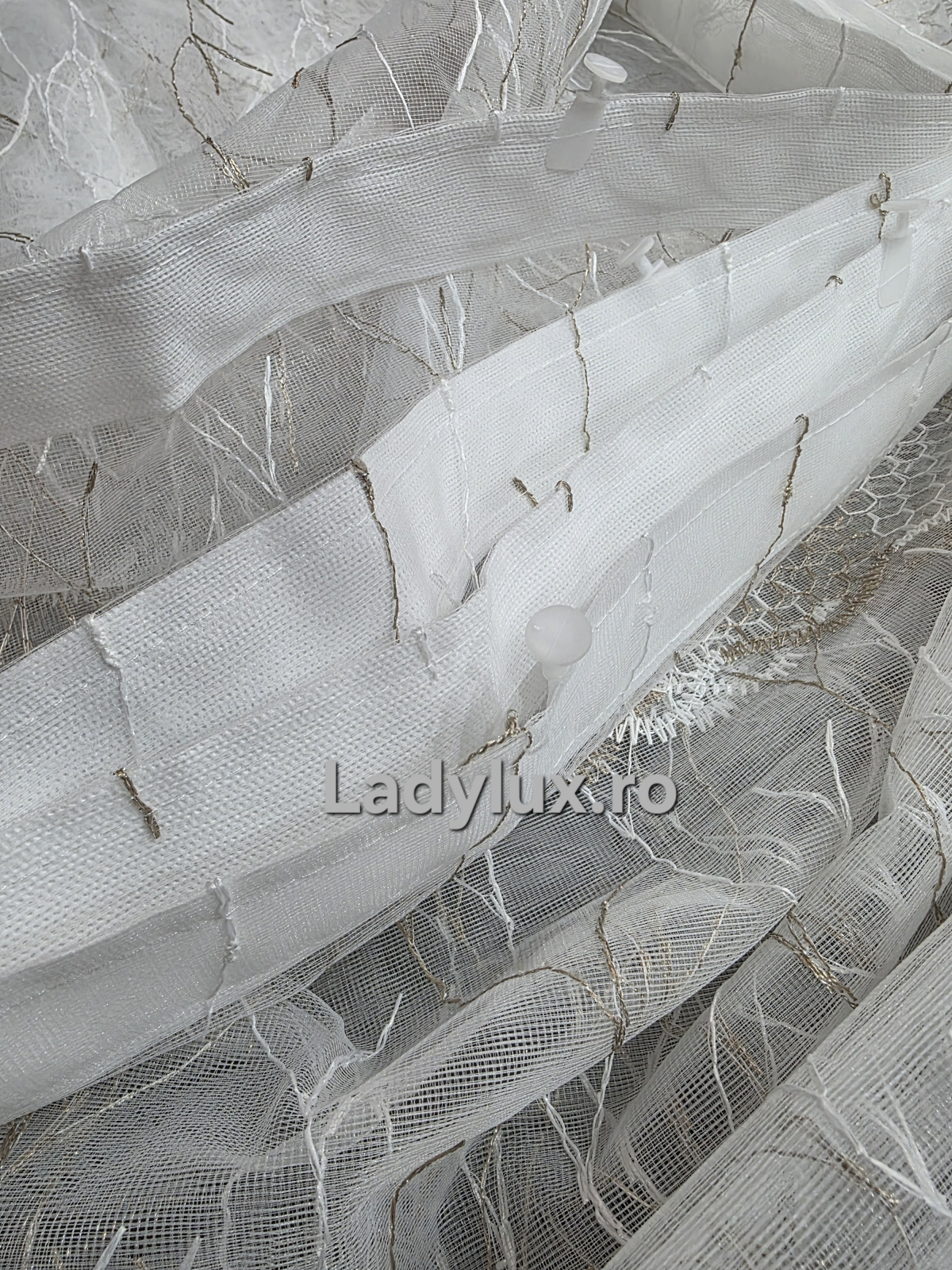 Perdea Alba cu broderie Alb+Capucino Model Fagure– gata cusuta cu tiv si rejansa - 3M x 2,5