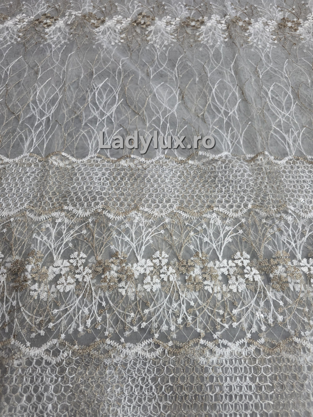 Perdea Alba cu broderie Alb+Capucino – 3M x 2,5 - rafinament și strălucire discretă
