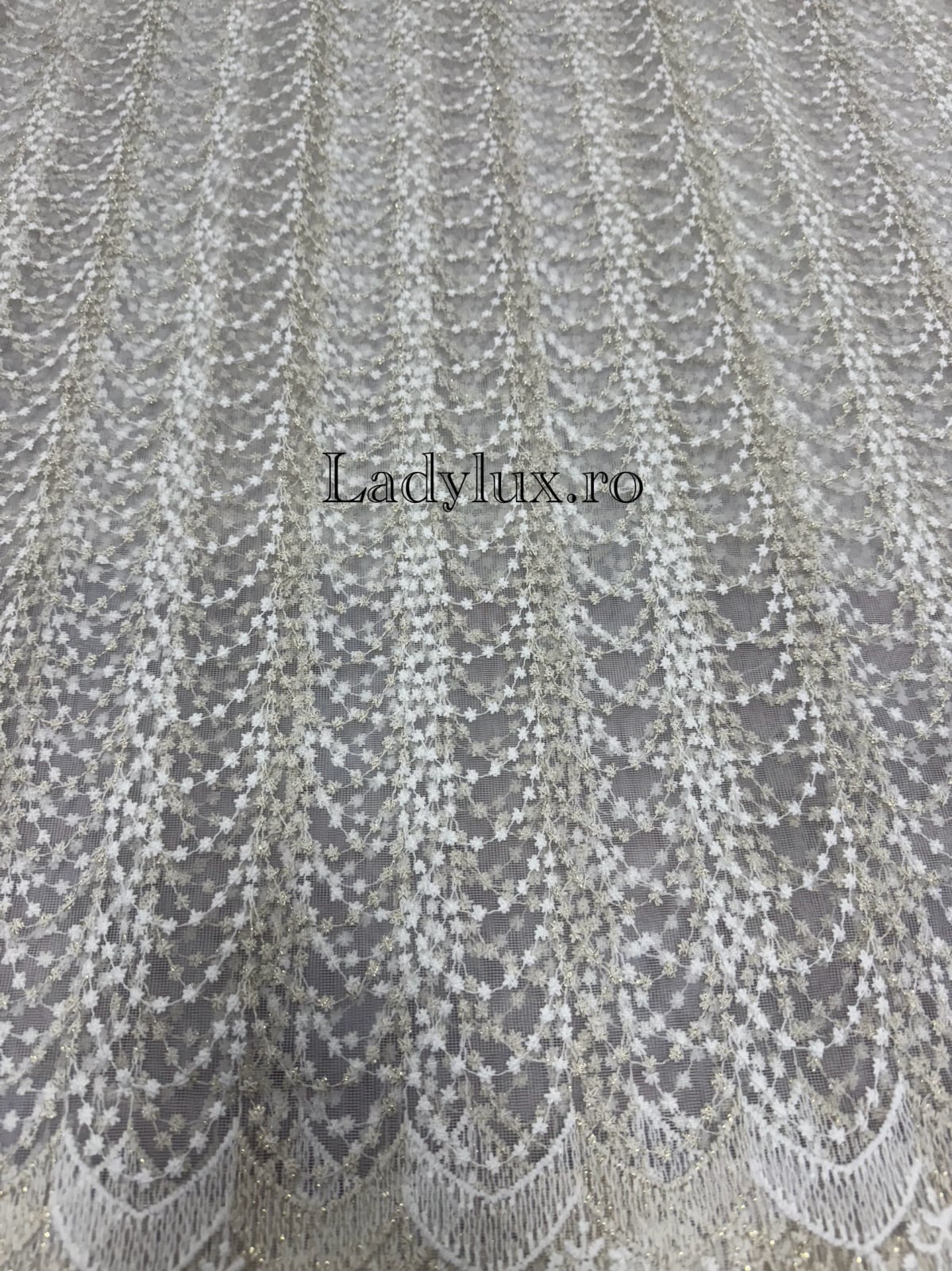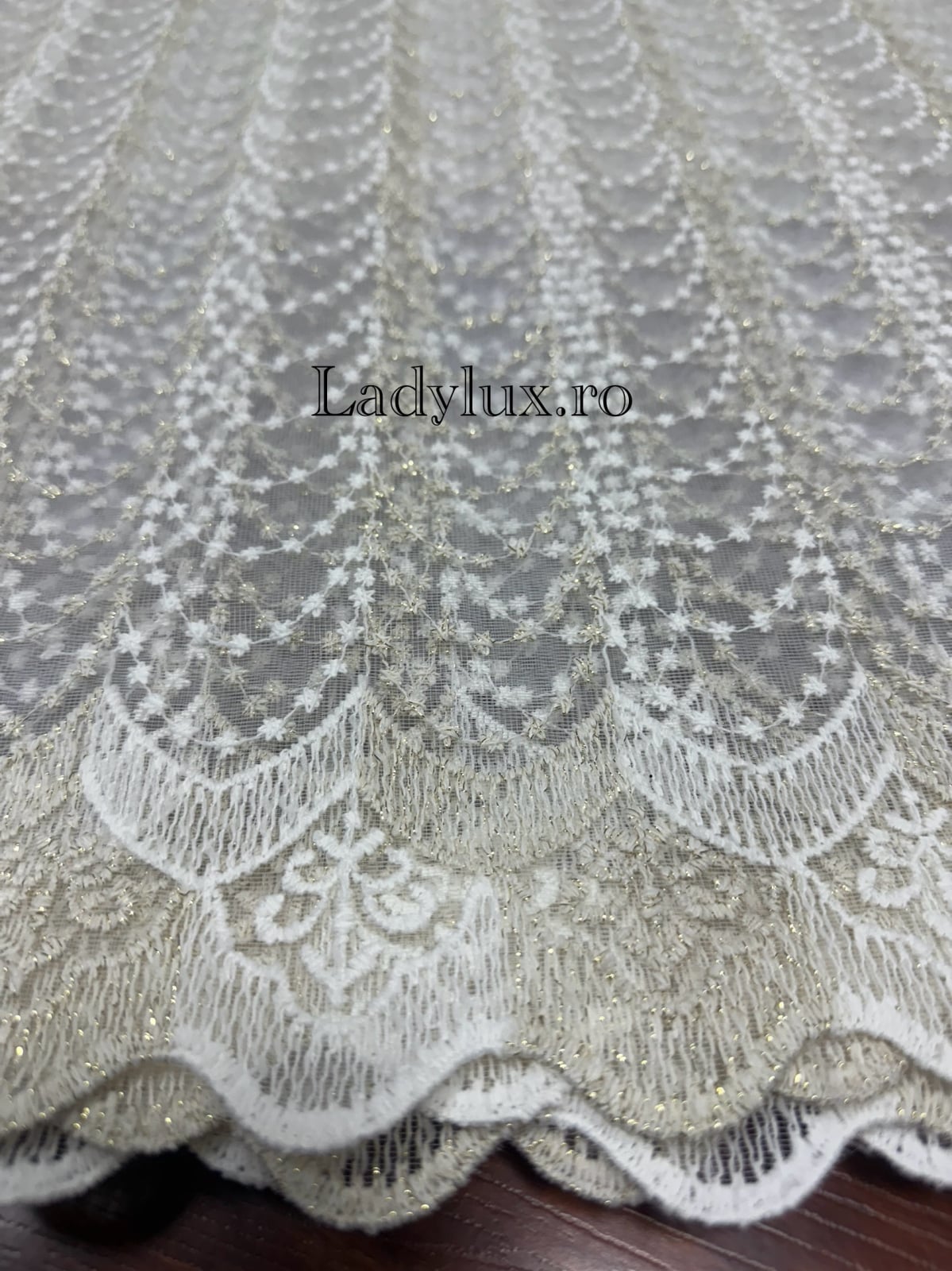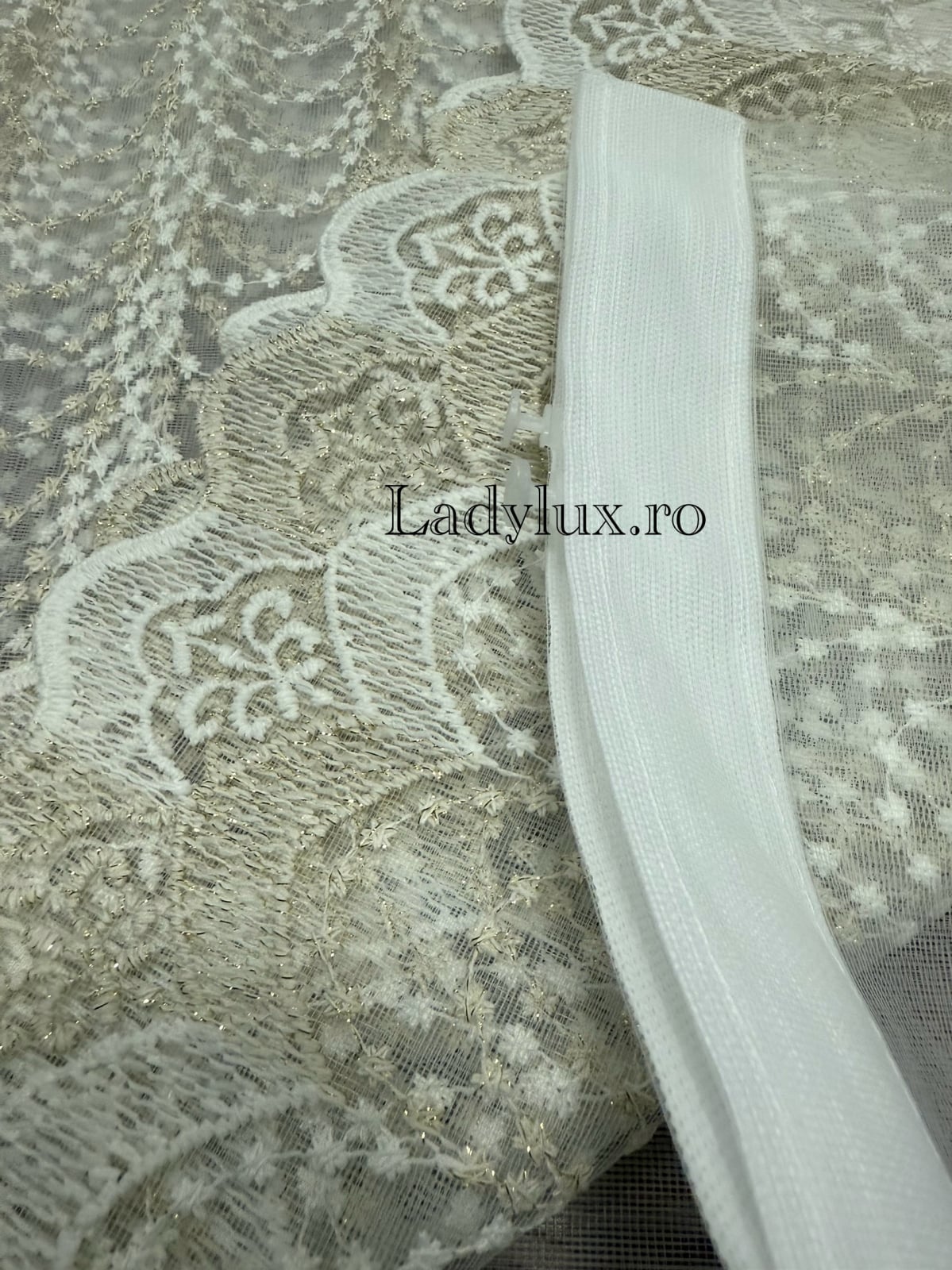 Perdea alba cu broderie Crem+alb  – 3M x 2.5h - rafinament și strălucire discretă