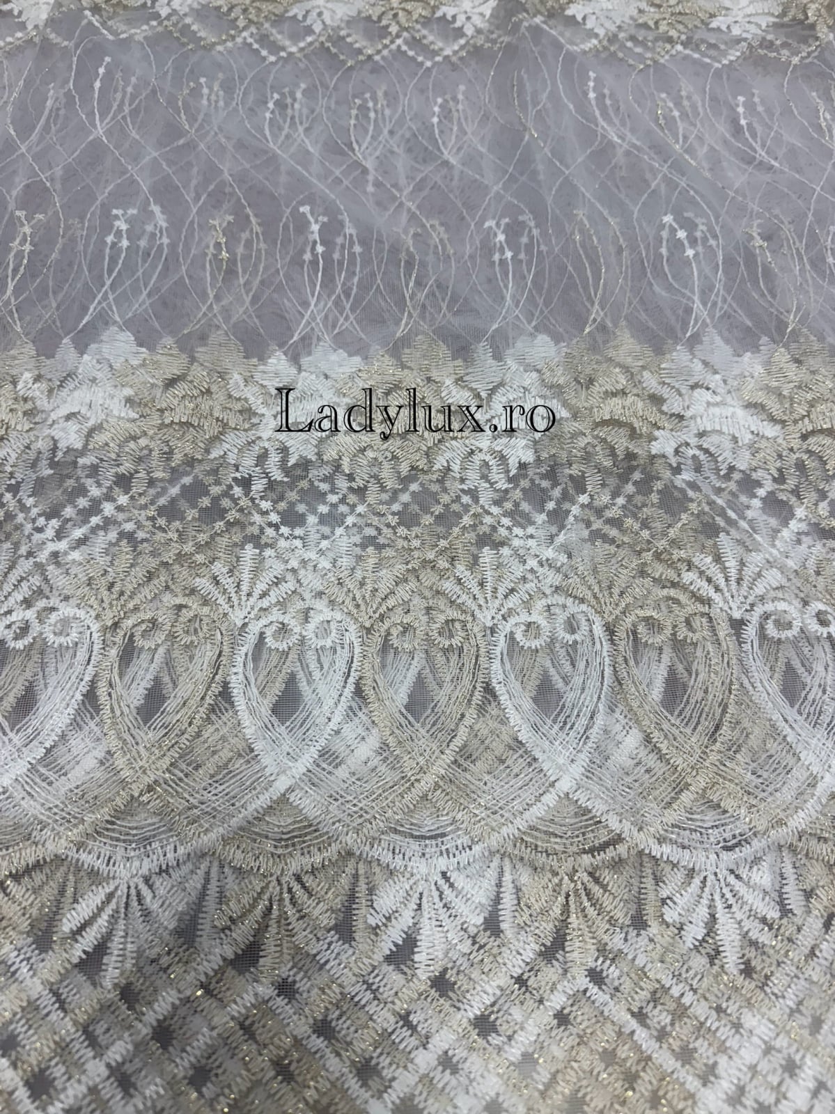 Perdea alba cu broderie Crem Model Paun – gata cusuta cu tiv si rejansa - 3M x 2.5h