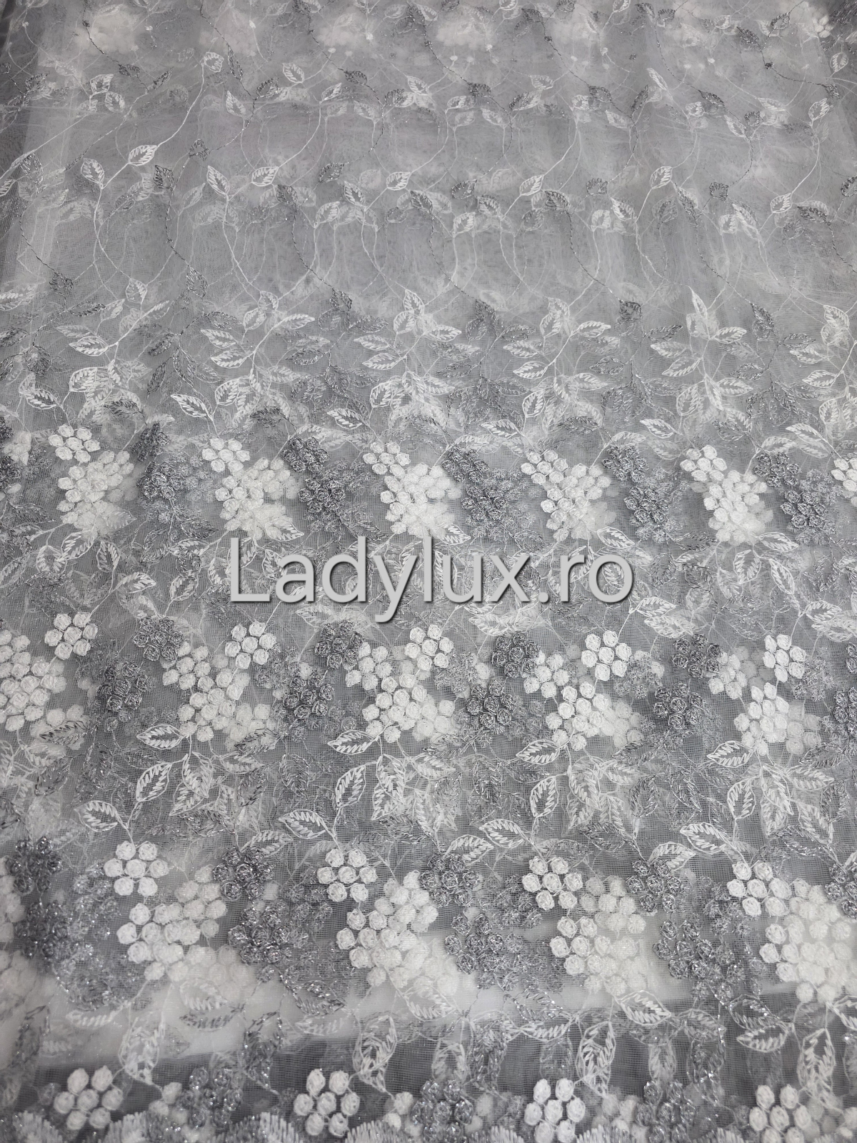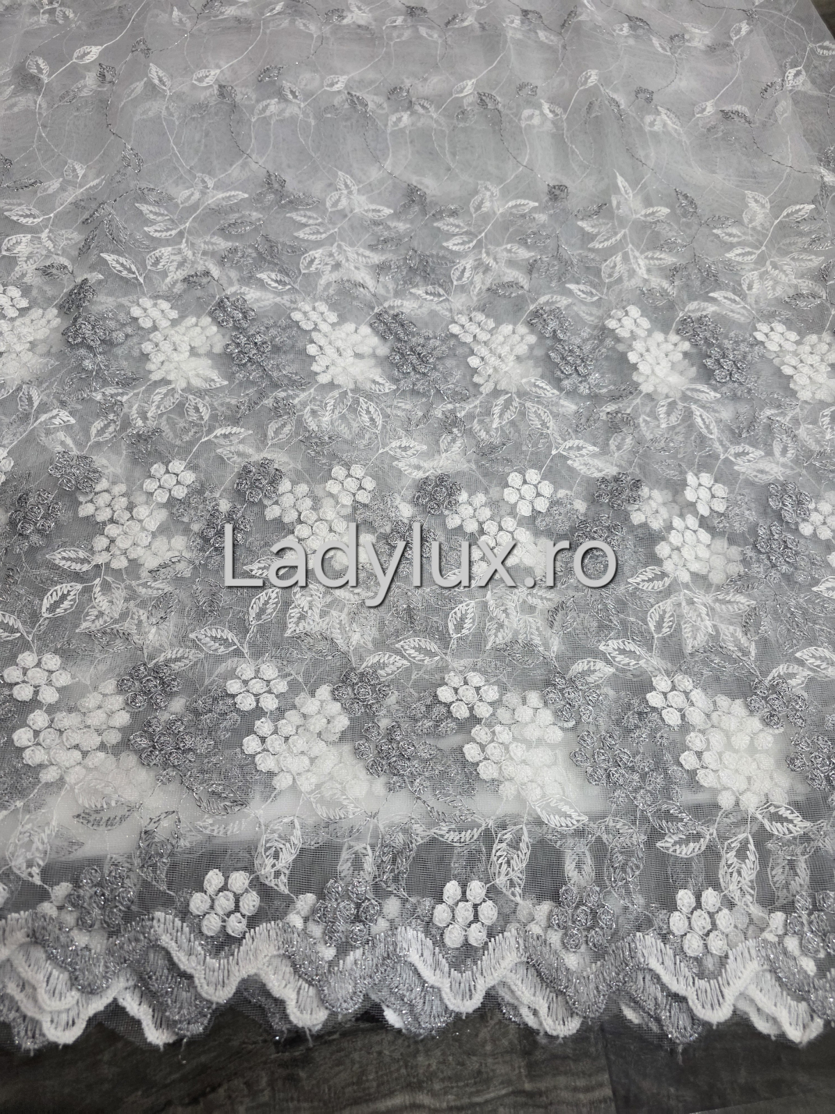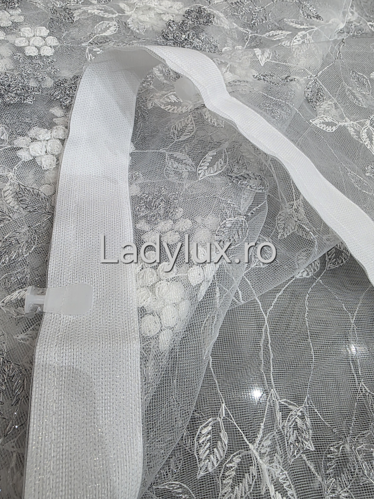Perdea Alba cu Broderie Gri+alb cu insertii Model Margarit– rafinament și strălucire discretă C1749