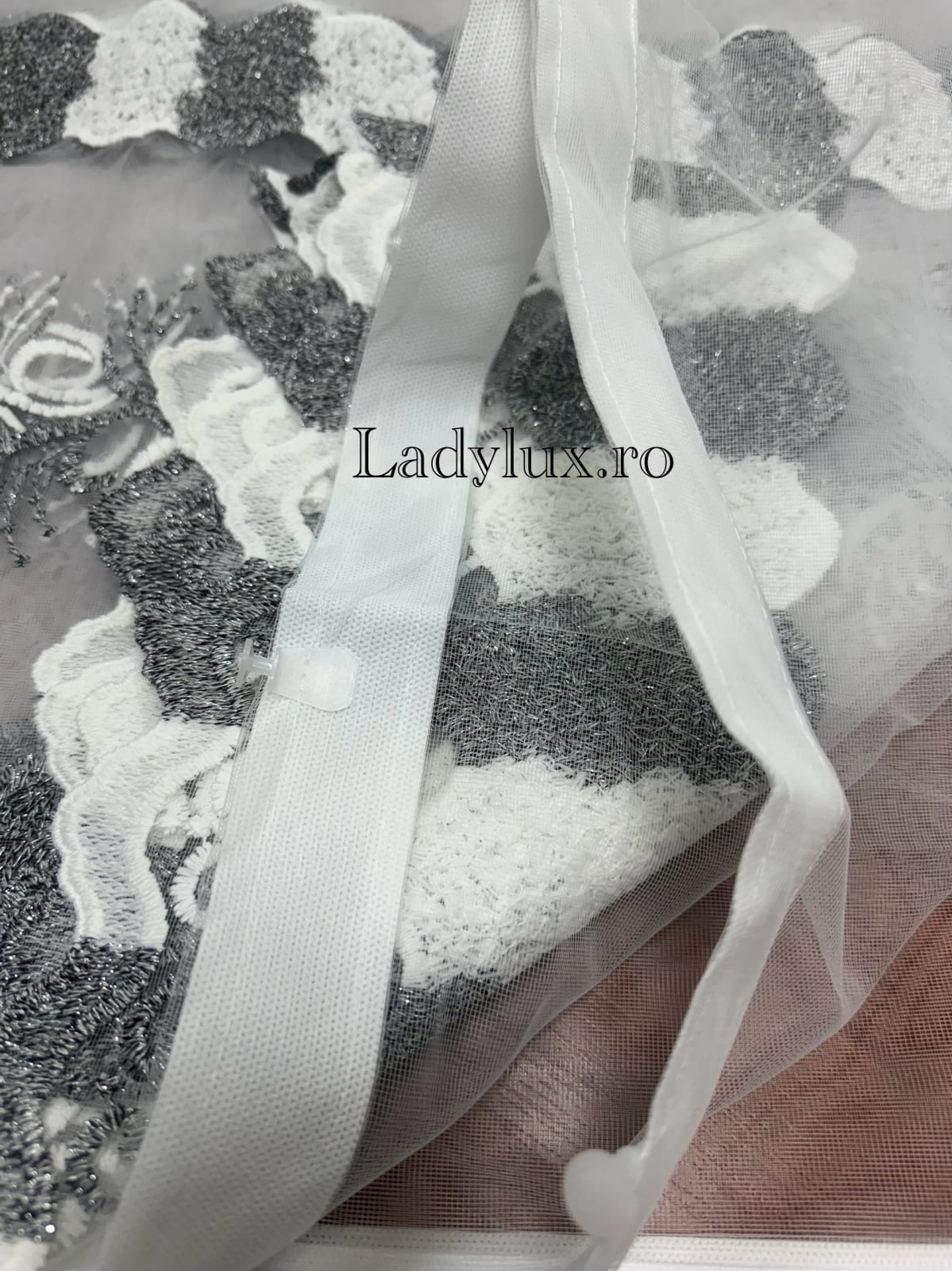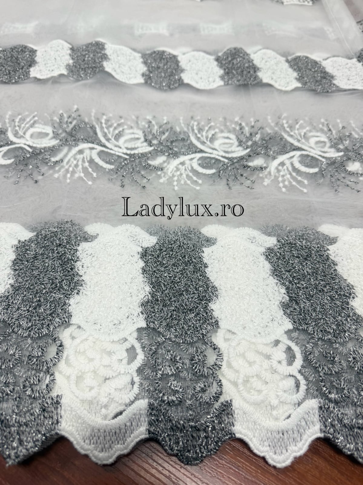 Perdea alba cu broderie Gri+alb – 3M x 2.5h - rafinament și strălucire discretă