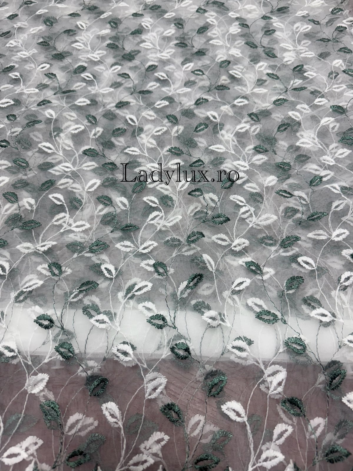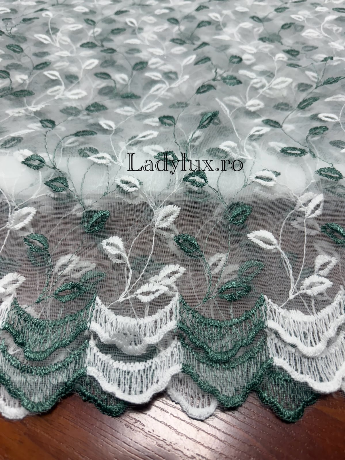 Perdea alba cu broderie verde  – 3M x 2.5h - rafinament și strălucire discretă