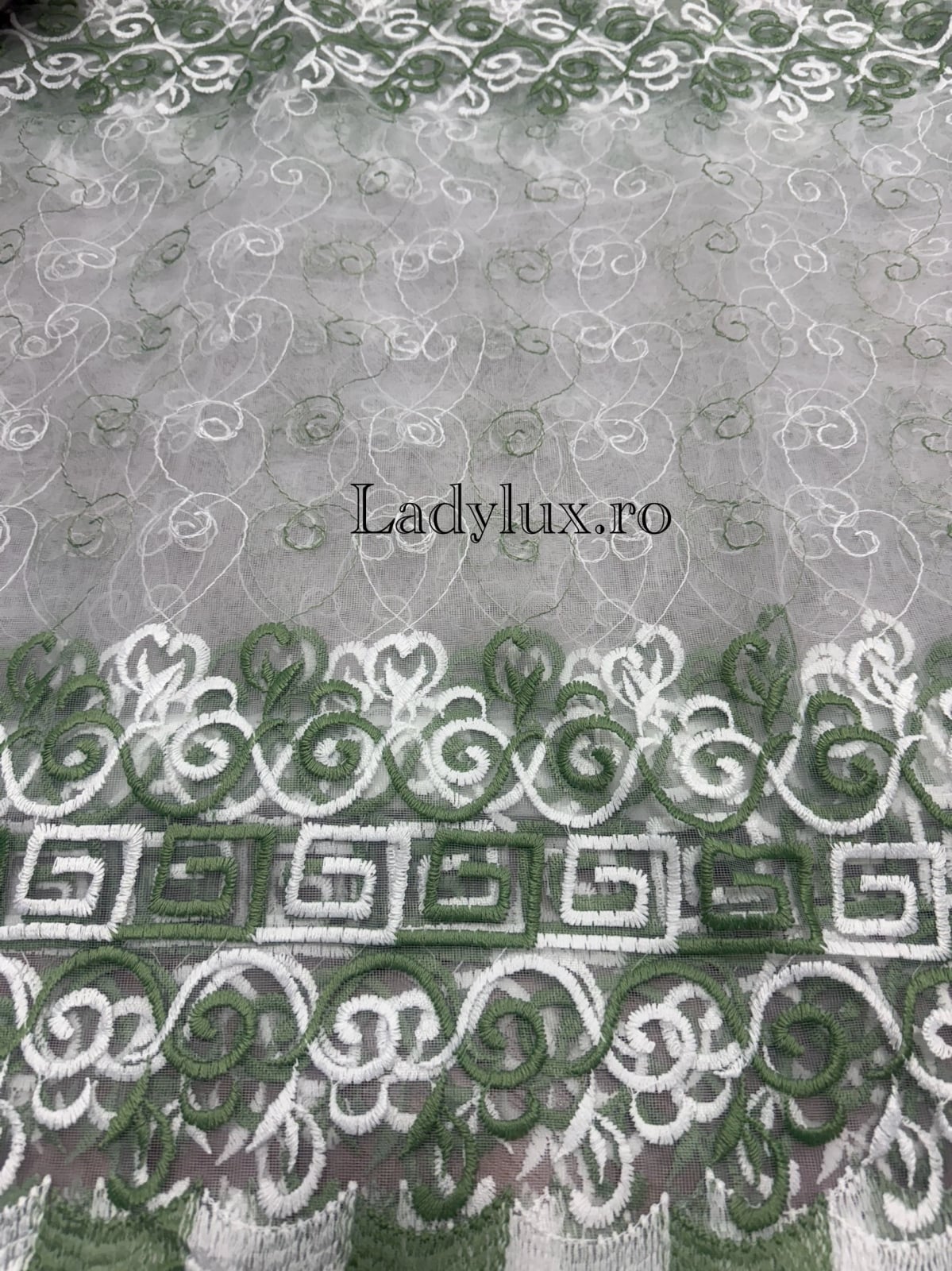 Perdea alba cu broderie Verde+alb –C1826 gata cusuta cu tiv si rejansa - 3M x 2.5h