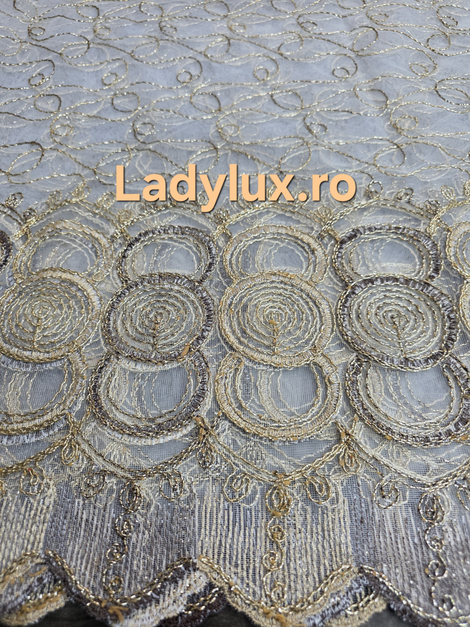 Perdea din Tulle cu Broderie Aurie - Model Gold Cercuri - 3 M x 2.5 h