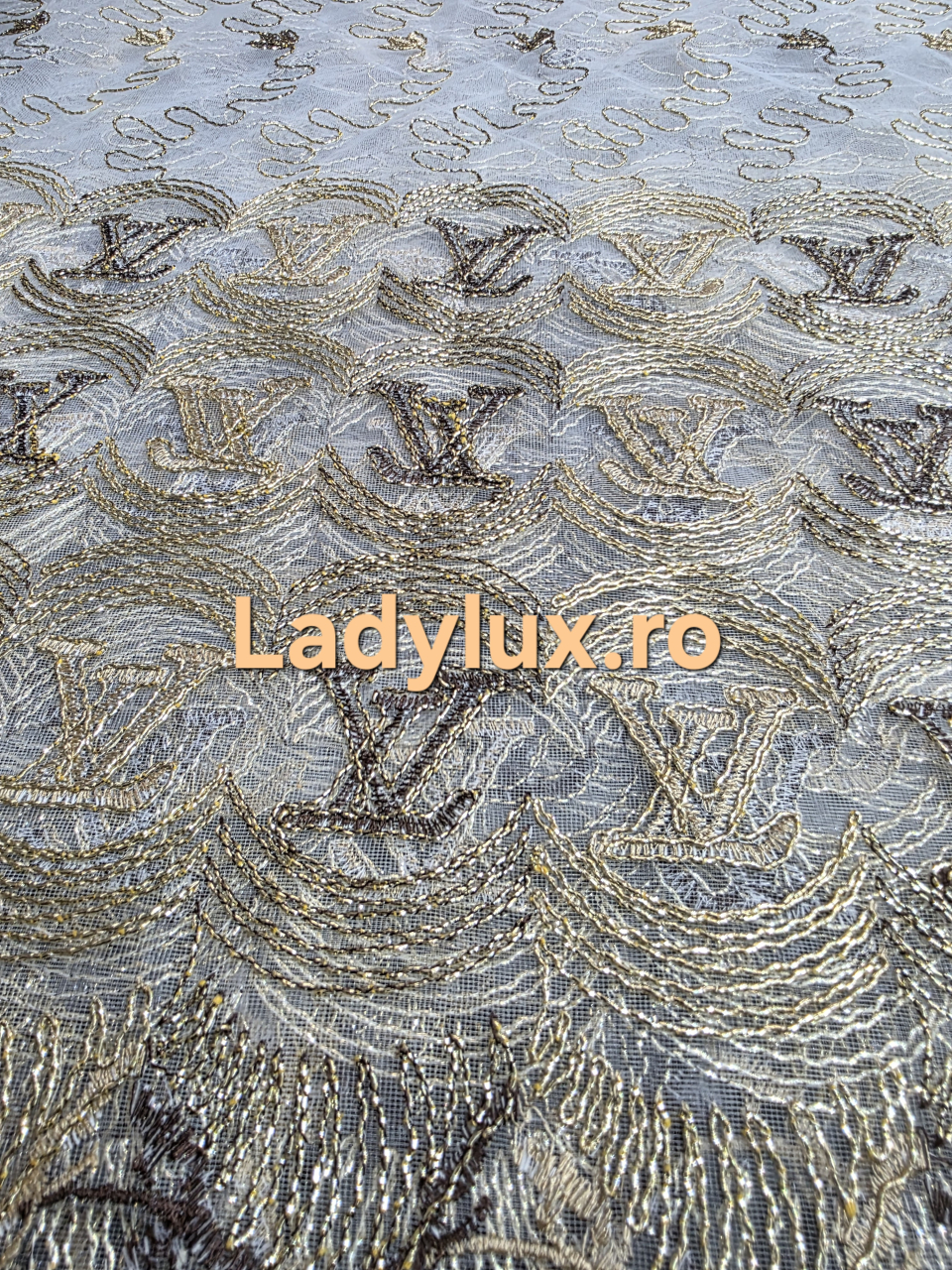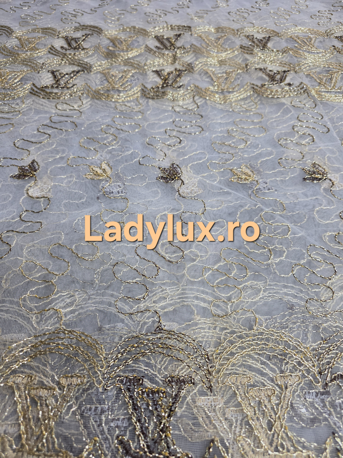 Perdea din Tulle cu Broderie Aurie - Model Gold LV - 3 M x 2.5 h