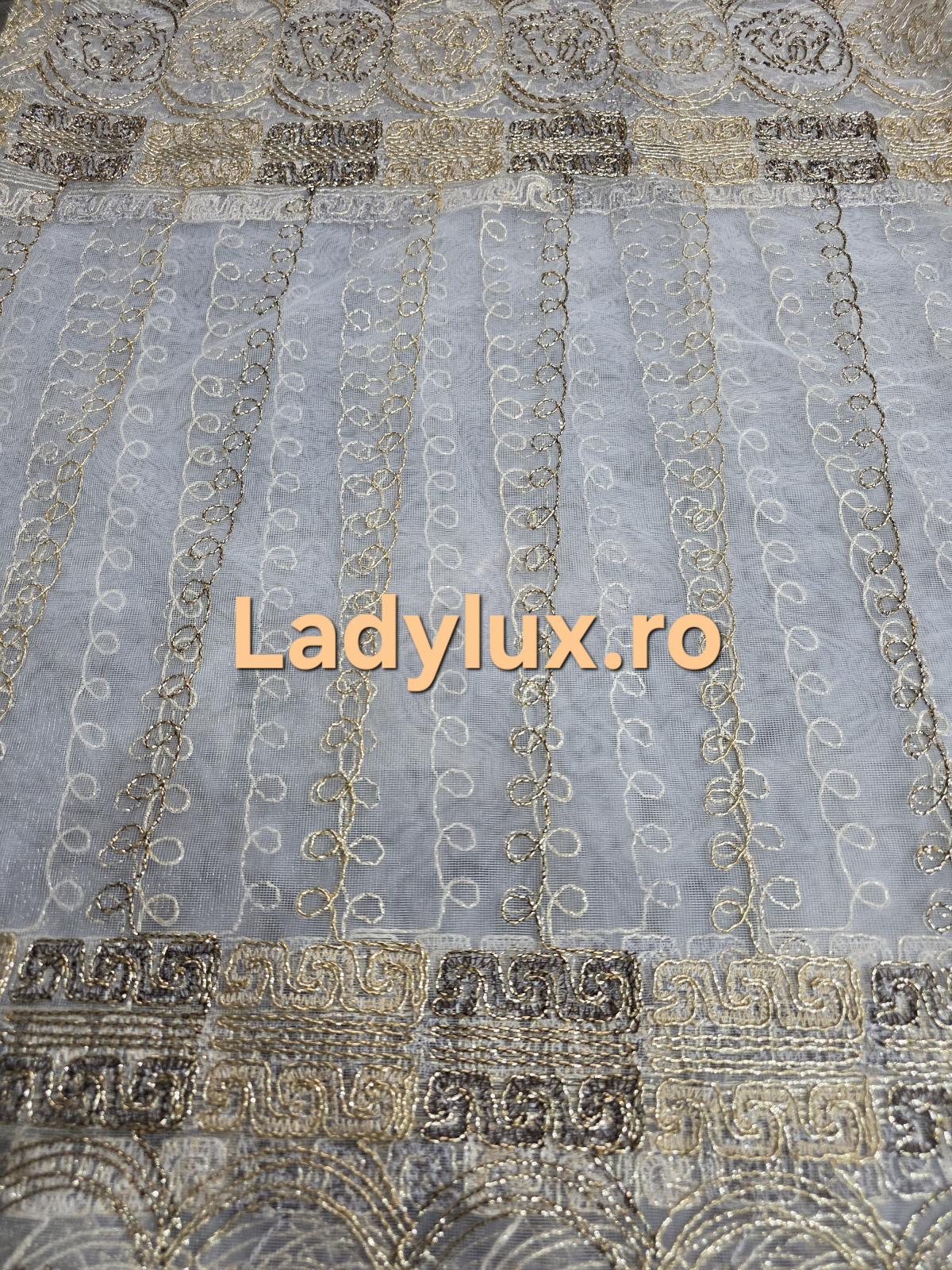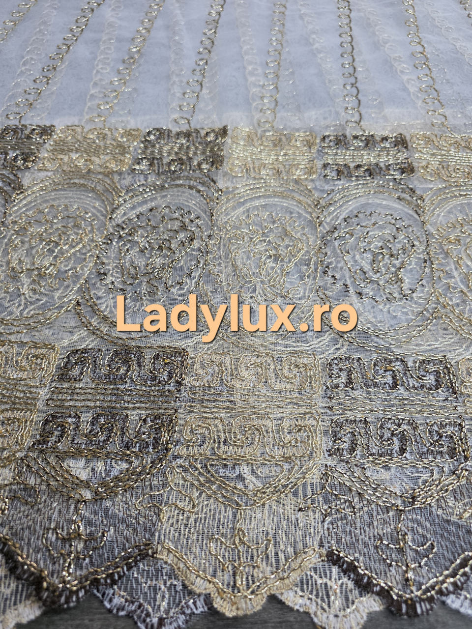 Perdea din Tulle cu Broderie Aurie - Model Gold VRS - 3 M x 2.5 h