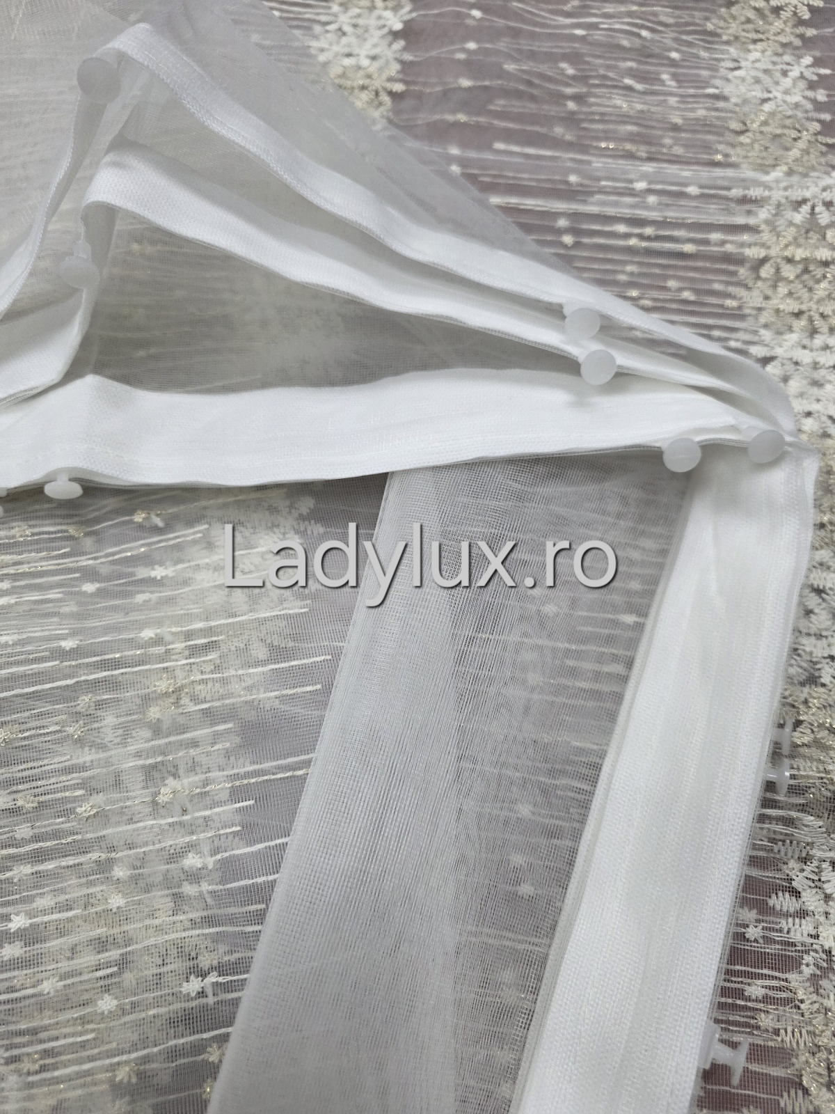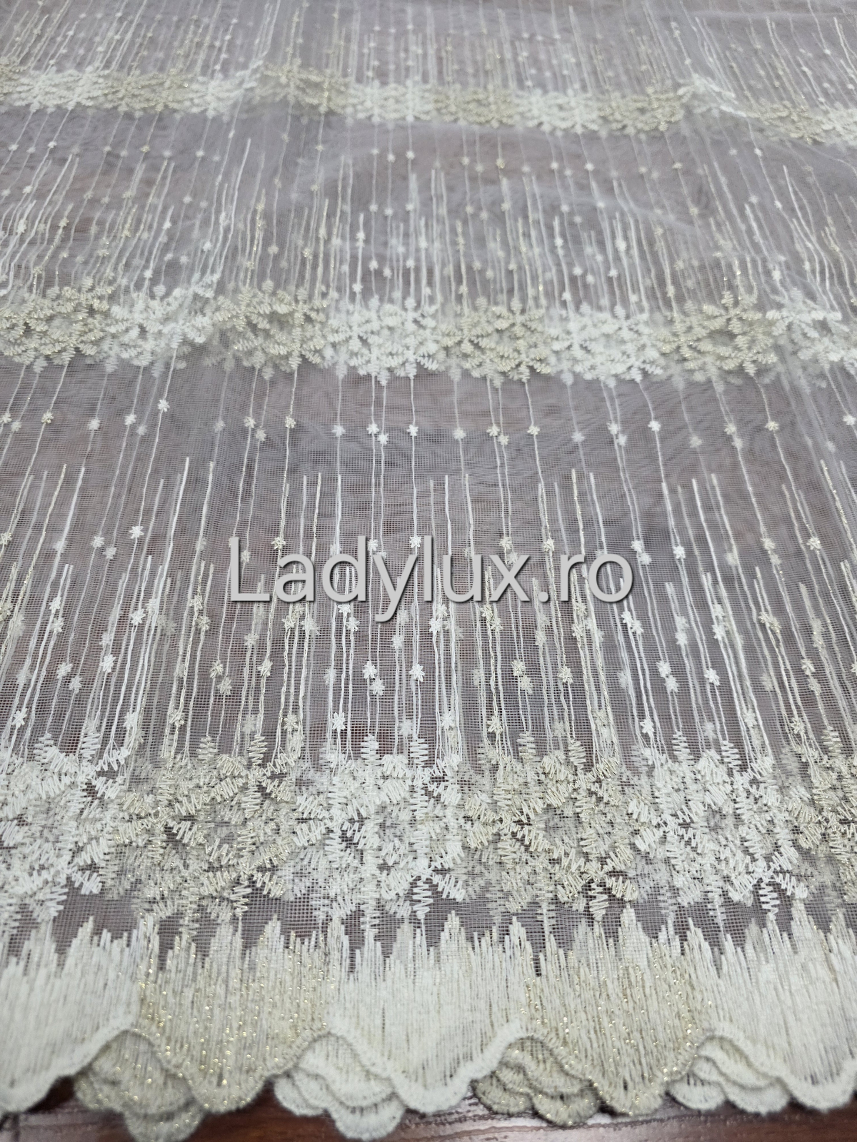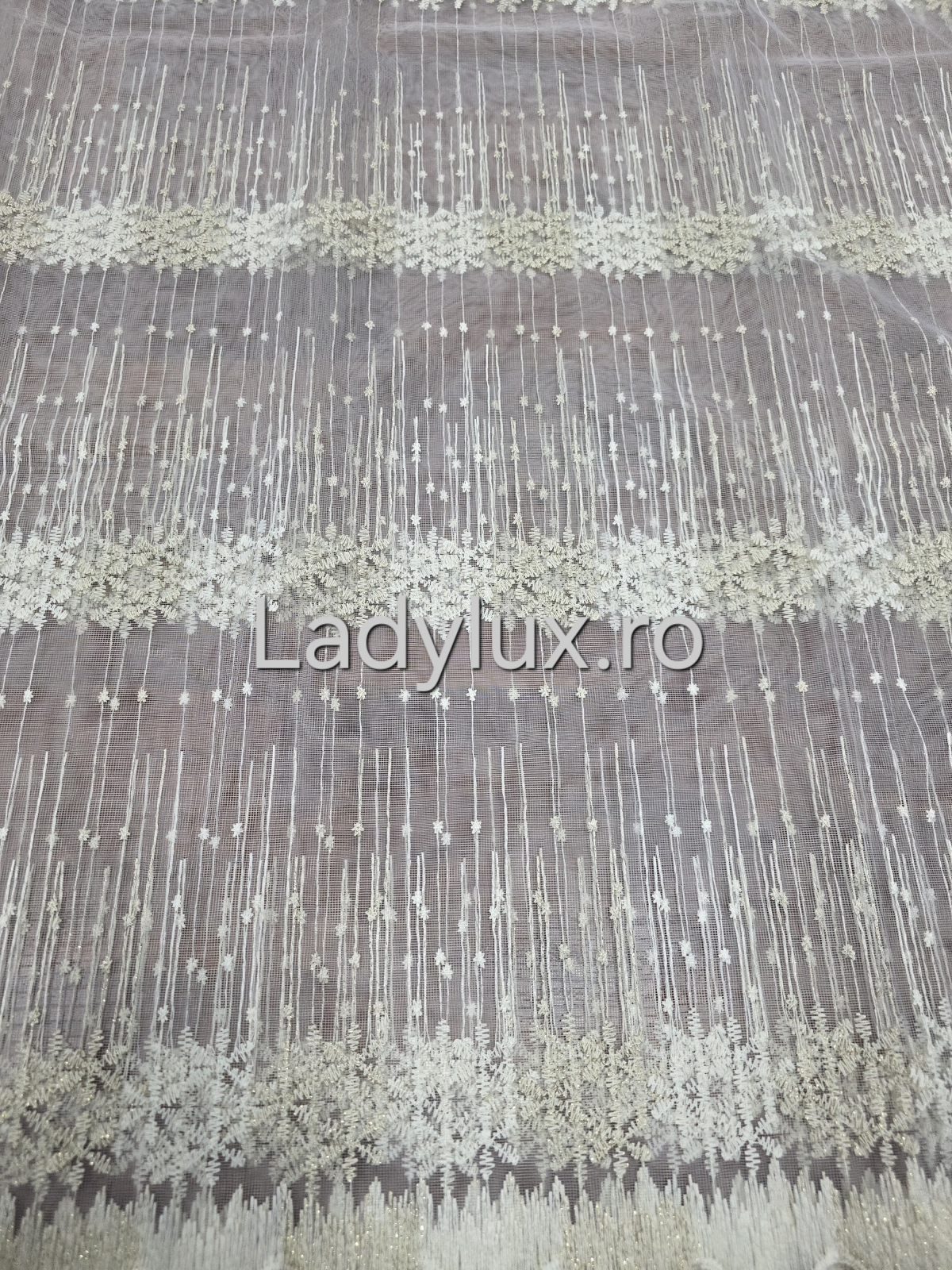 Perdea Ivoar cu broderie Crem+Ivoar Model Fulg– gata cusuta cu tiv si rejansa - 3M x 1.9 h