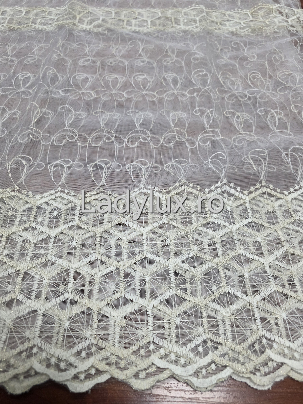 Perdea Ivoar cu broderie Crem+Ivoar Model Hexa– gata cusuta cu tiv si rejansa - 3M x 1.9 h