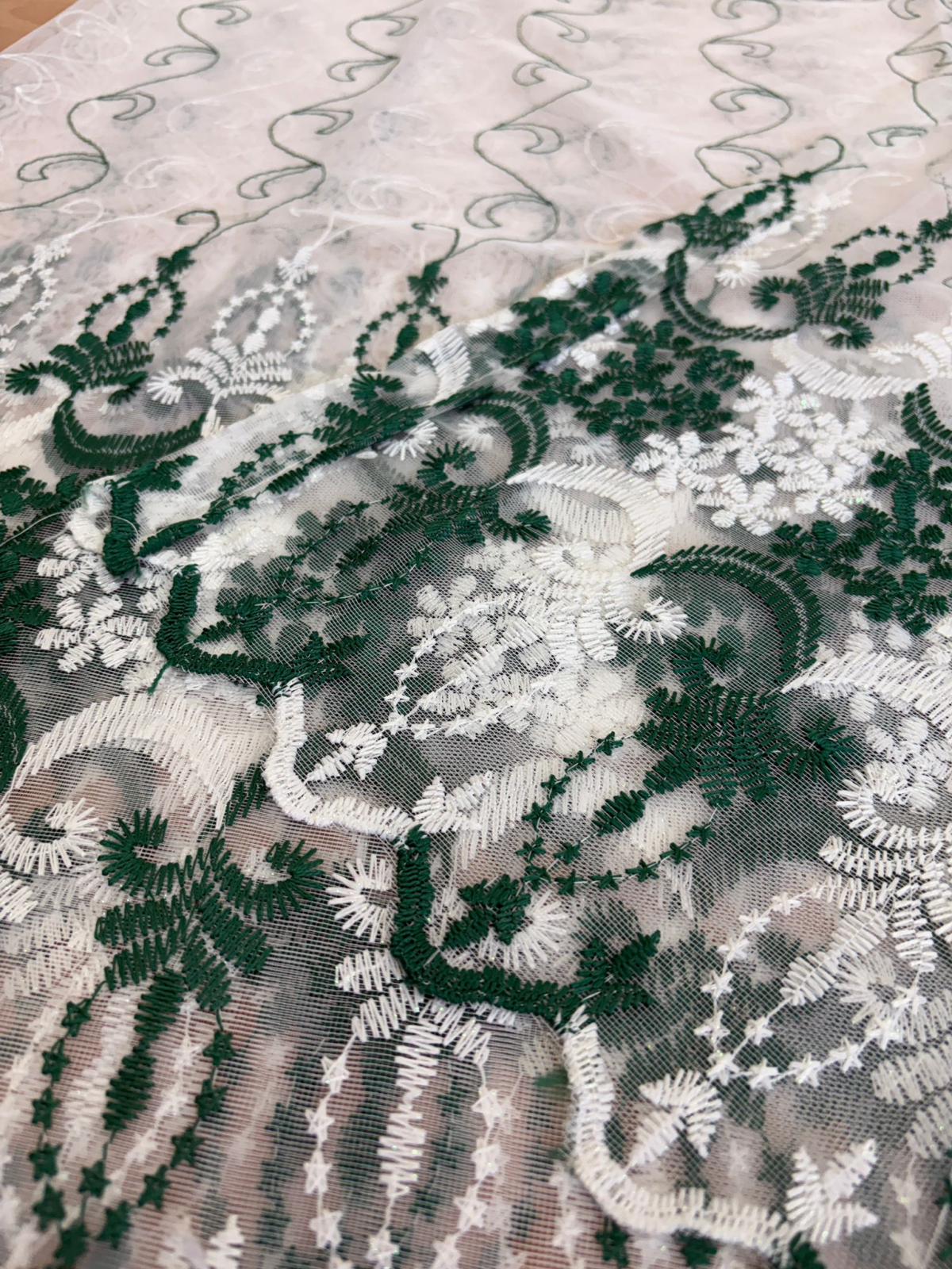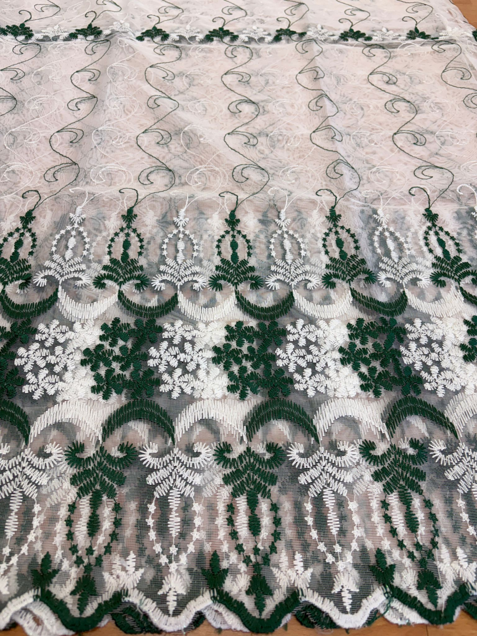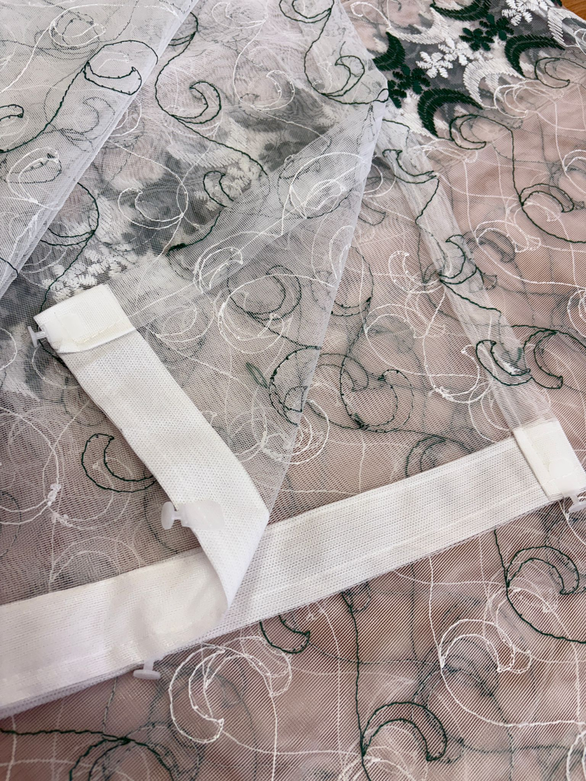 ✨Perdea Tulle Alba cu Broderie Verde   Model Arcade tiv si rejansa - 3M x 2.5h