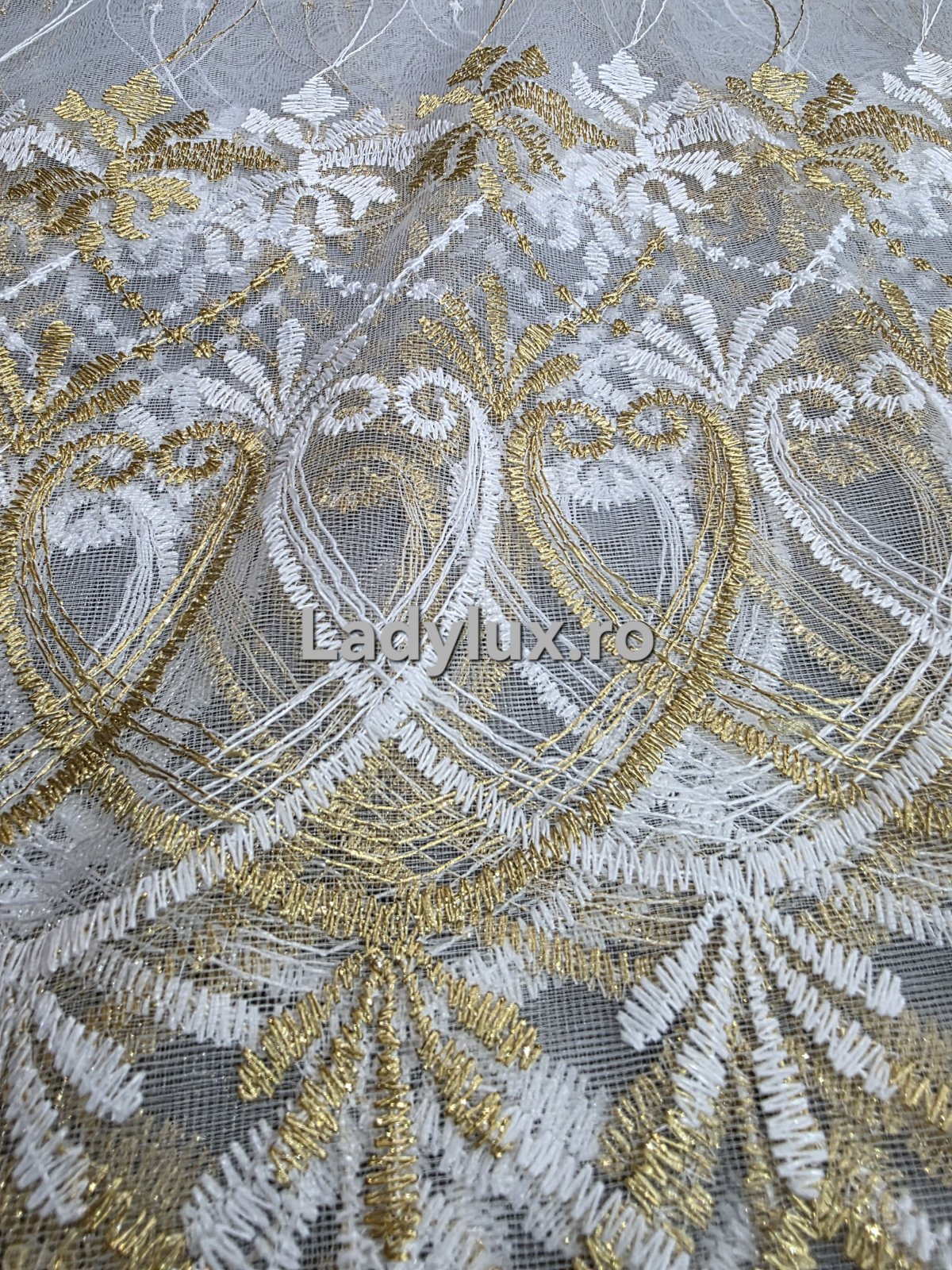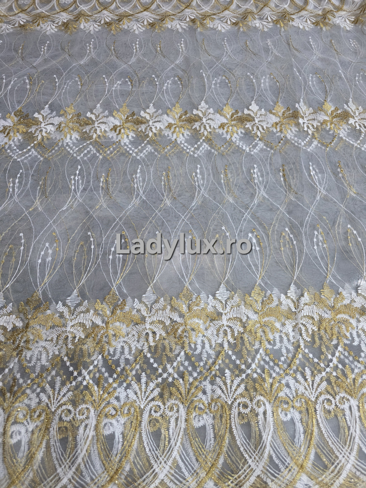 Perdea alba cu broderie Aurie – 4M x 2.8h - rafinament și strălucire discretă