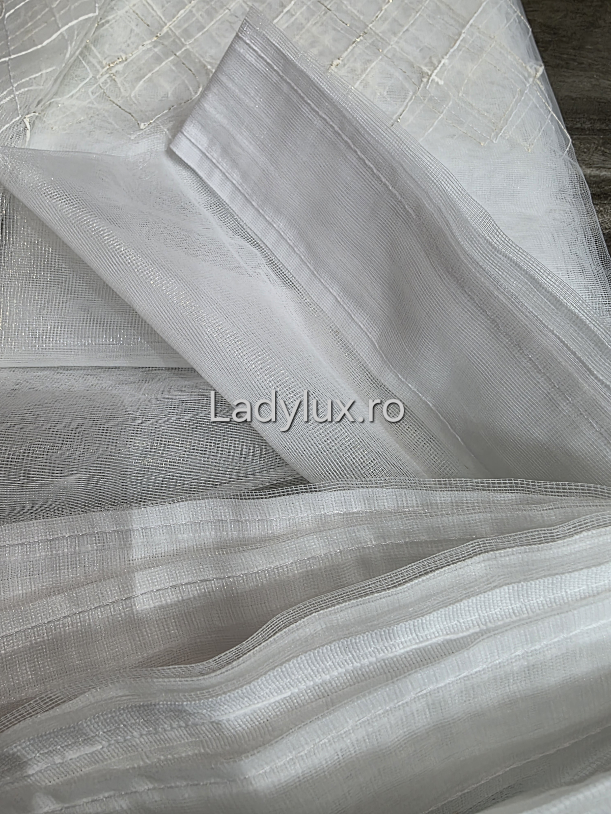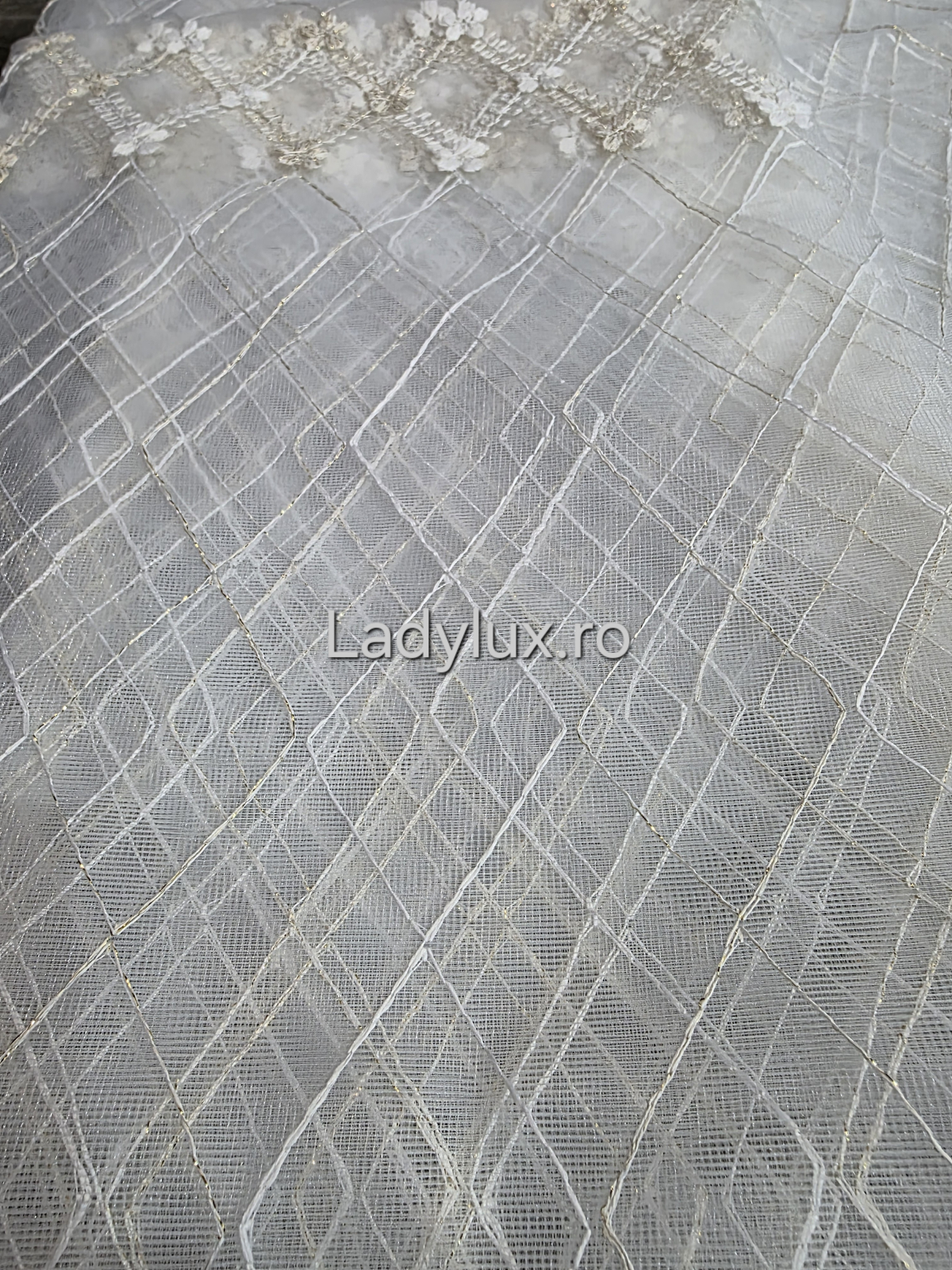 Perdea din Tull cu Model – 4 m x 2.8 m, Cusută cu Tiv și Rejansă de 6 cm - Broderie Bej+alb
