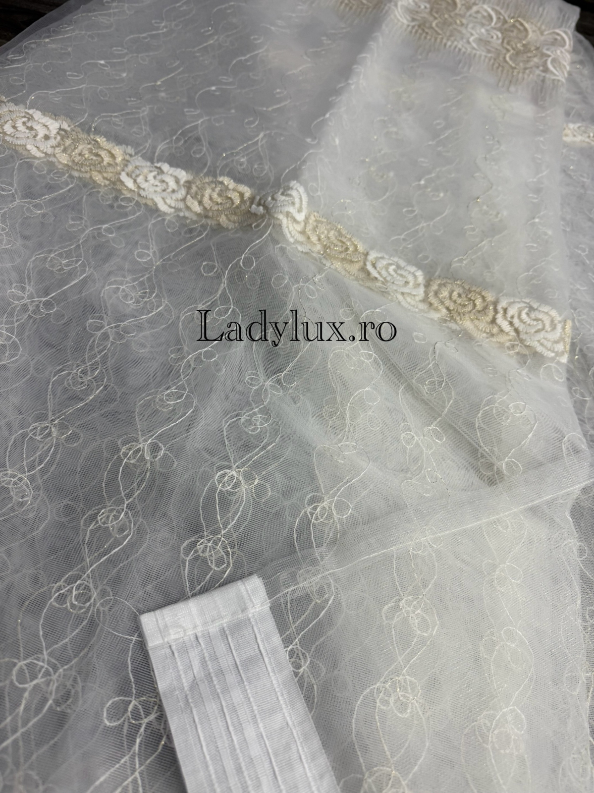 Perdea din Tull cu Model – 4 m x 2.8 m, Cusută cu Tiv și Rejansă de 6 cm