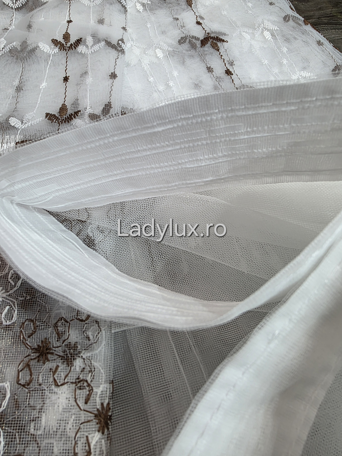 Perdea din Tull cu Model – 4 m x 2.8 m, Cusută cu Tiv și Rejansă de 6 cm - Brown