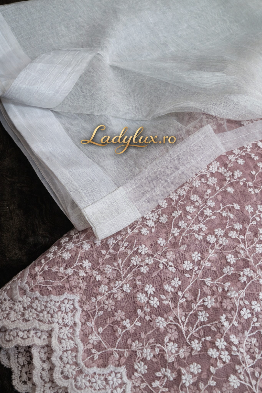 Adaugă un plus de eleganță și luminozitate casei tale cu această perdea albă decorată cu broderie fină, realizată din tulle delicat și materiale de înaltă calitate. Designul rafinat, cu accente roz subtile, oferă un aer sofisticat și cald oricărei încăperi, fie că este vorba despre living, dormitor sau spațiu de oaspeți.