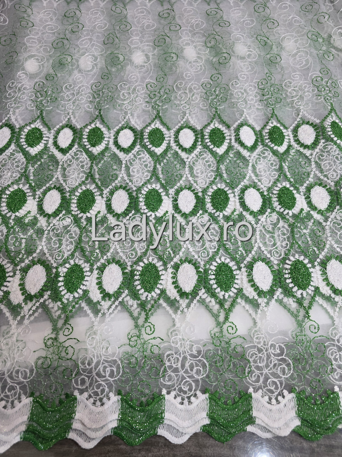 Perdea albă cu Broderie Verde  Model SRS– rafinament și strălucire discretă C1740