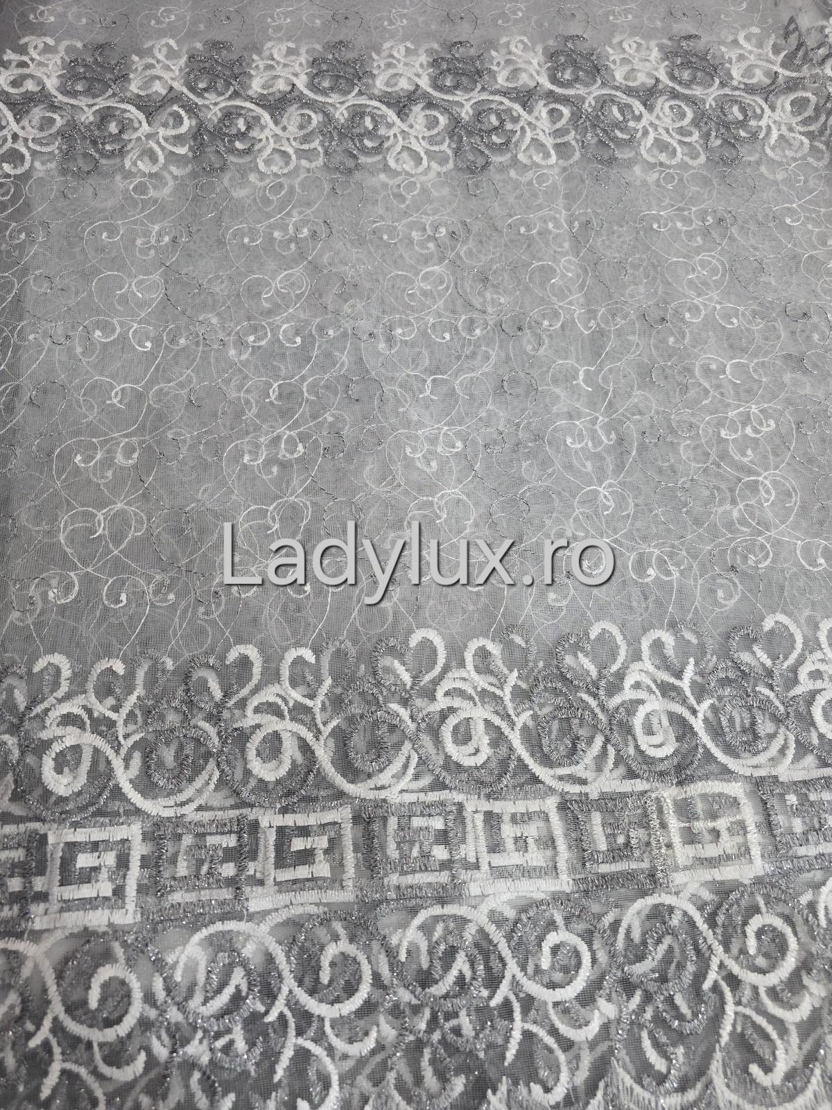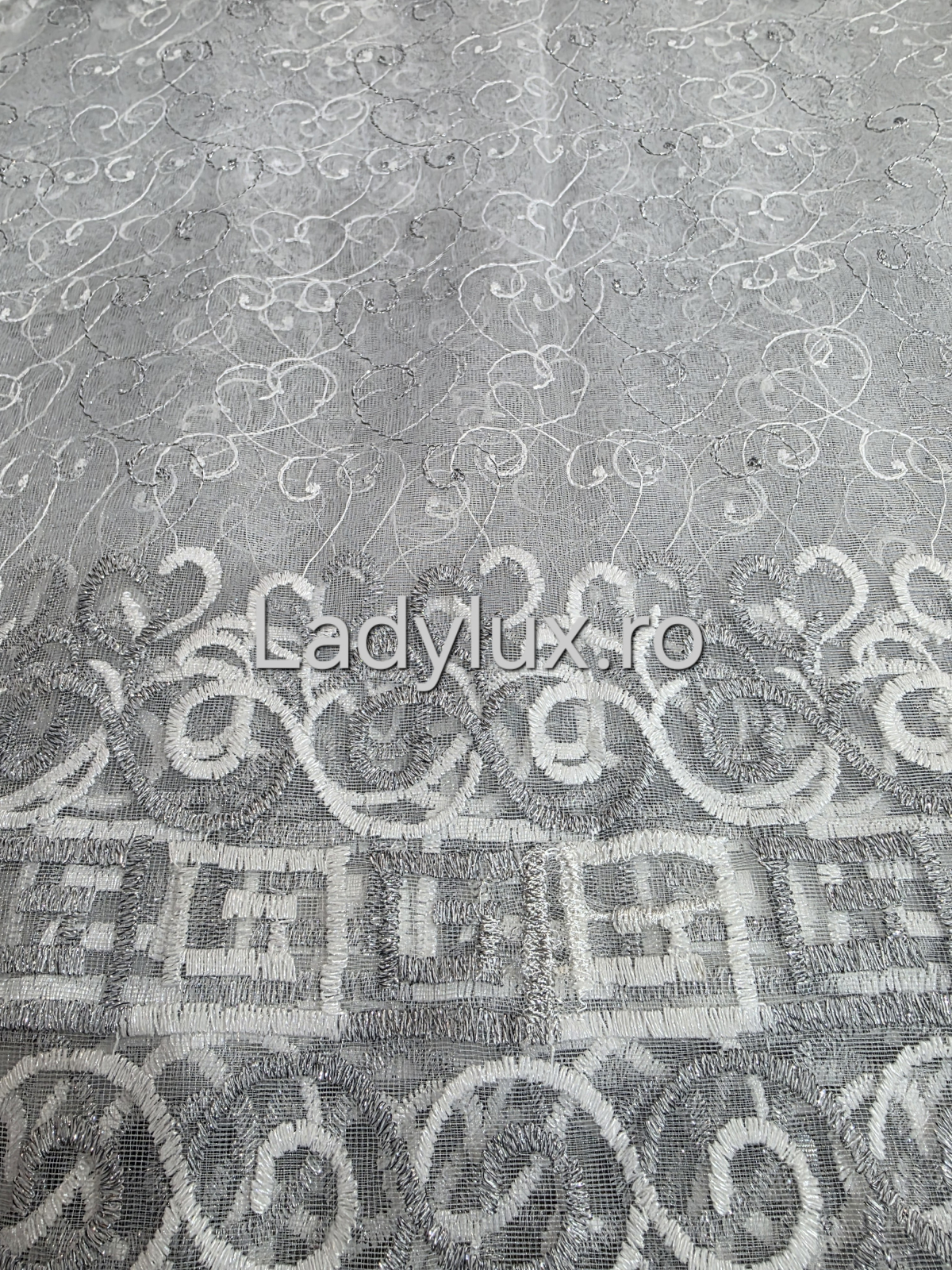 Perdea alba cu Broderie Gri+alb cu insertii Model VRS– rafinament și strălucire discretă C1746