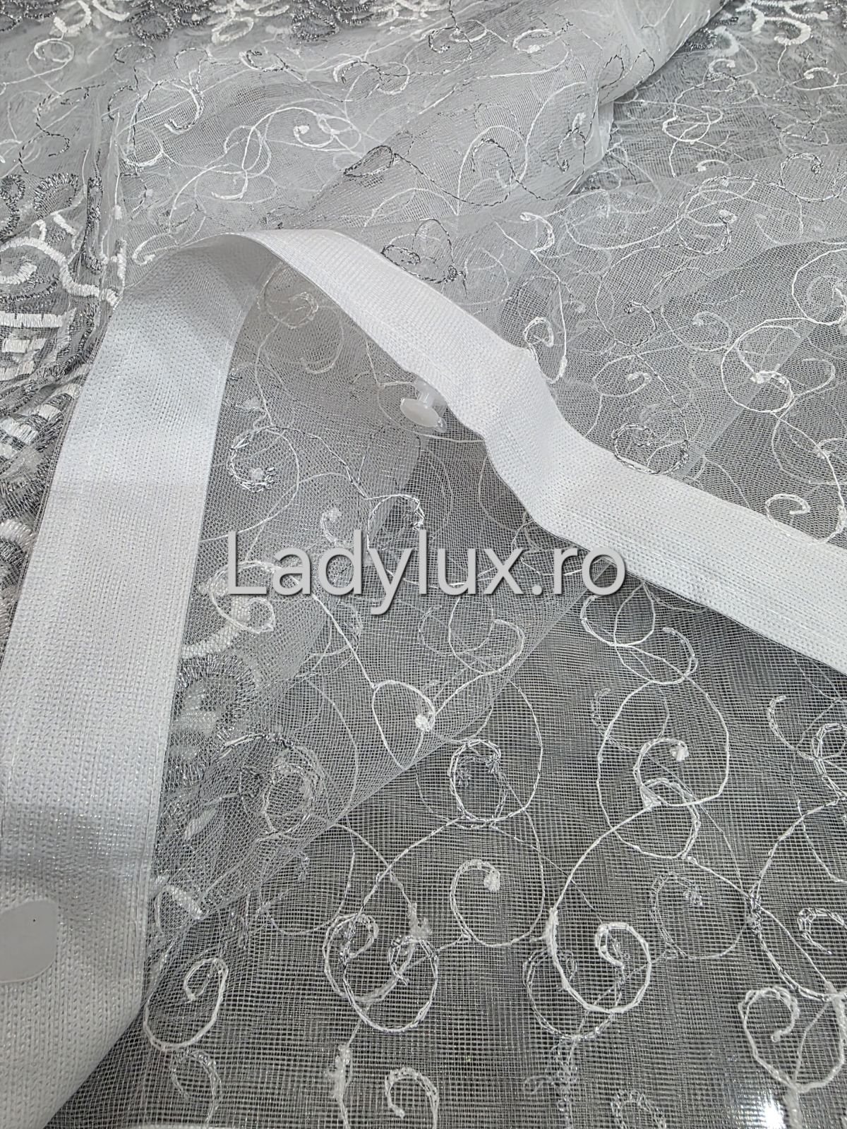 ✨ Perdea alba cu broderie Gri cu insertii – rafinament și strălucire discretă