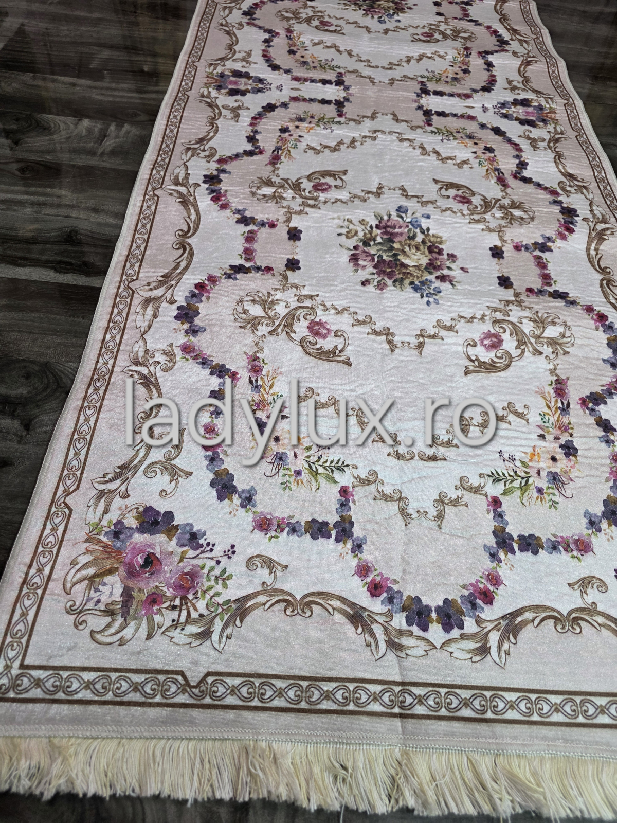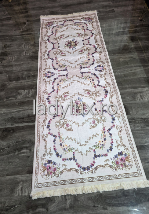 Adaugă un plus de rafinament și delicatețe locuinței tale cu această traversă subțire 75x200 cm, lucrată cu atenție la detalii și prevăzută cu spate antiderapant pentru siguranță și stabilitate. Cu un design floral elegant și accente decorative fine, această traversă este perfectă pentru a completa decorul unui hol, dormitor sau living clasic.